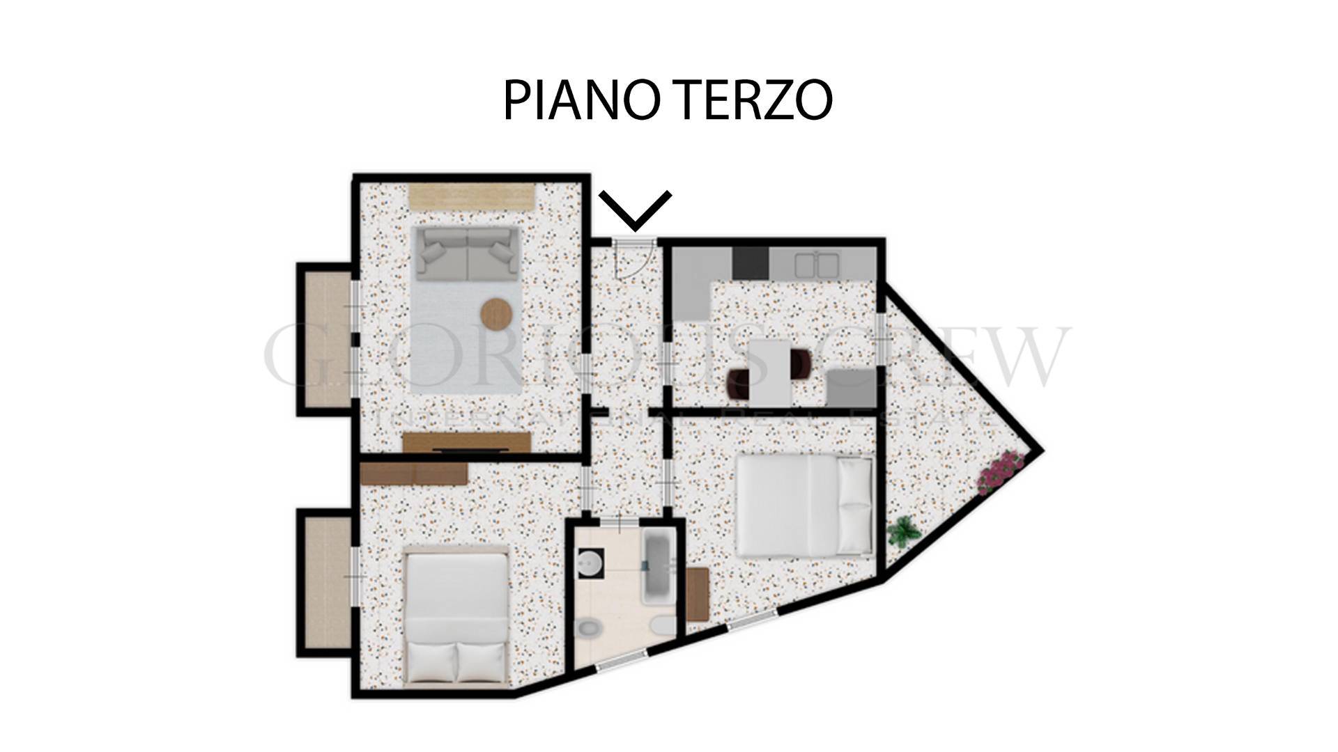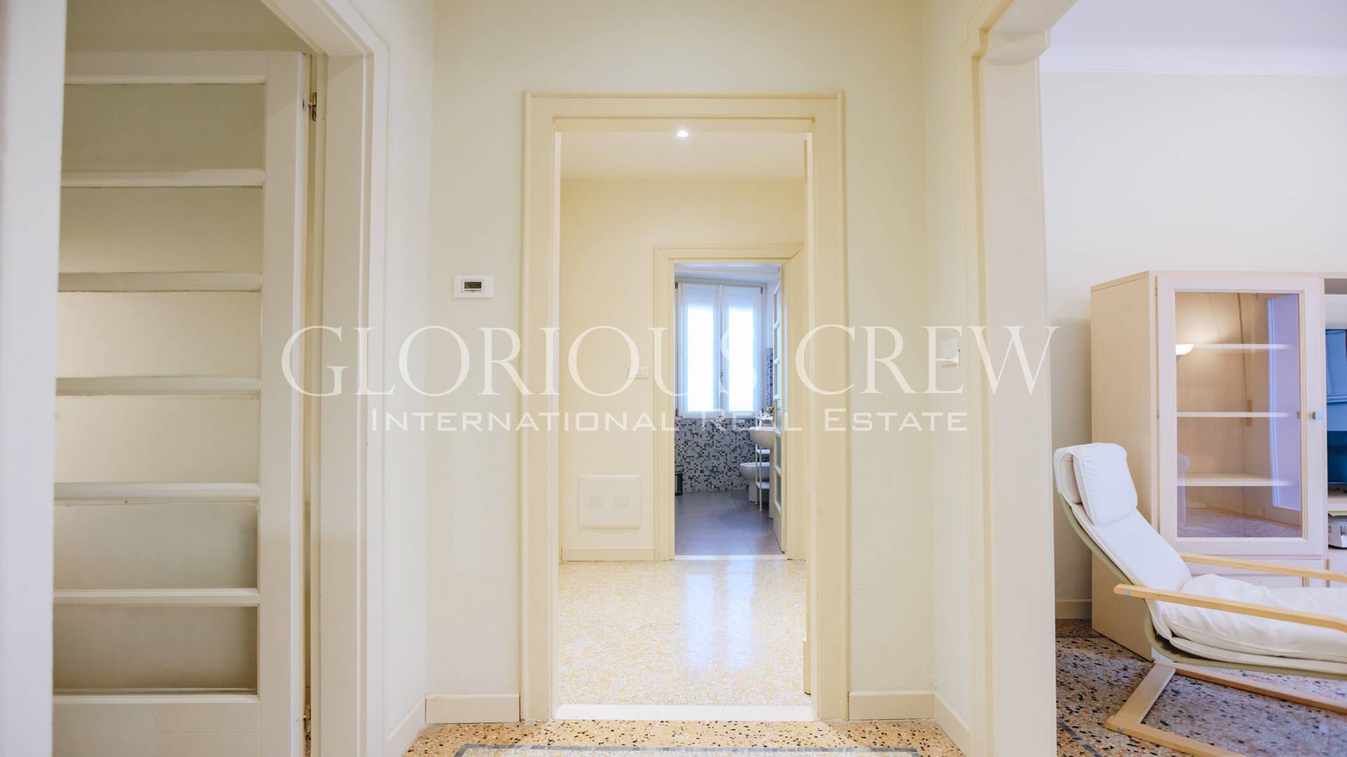 The building dates back to 1930 and is in excellent condition, thanks to a complete renovation. Located on the third floor, the apartment is served by a modern elevator that provides convenient access to the entrance.