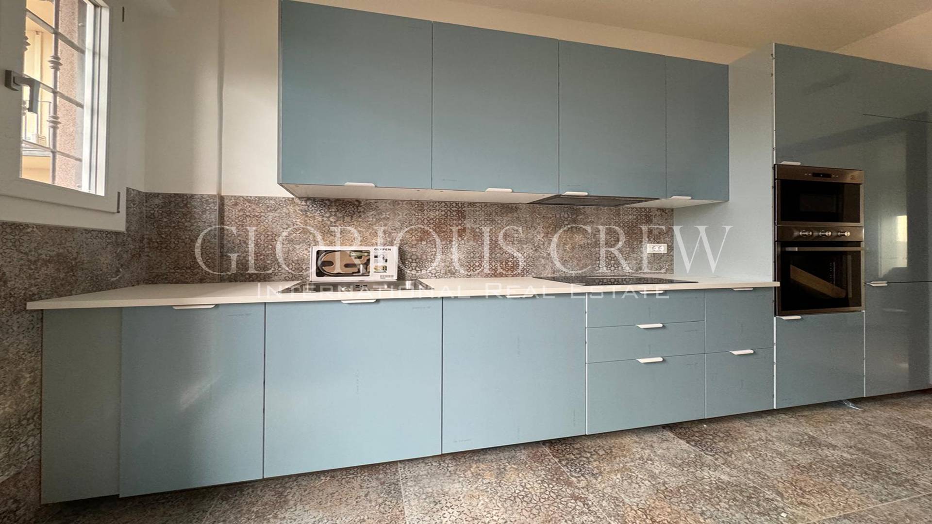 The apartment is divided into four rooms, including an eat-in kitchen and two double bedrooms with a study; it's perfect for a family or two couples. The apartment also has two bathrooms, both with windows and equipped with all the necessary amenities.
