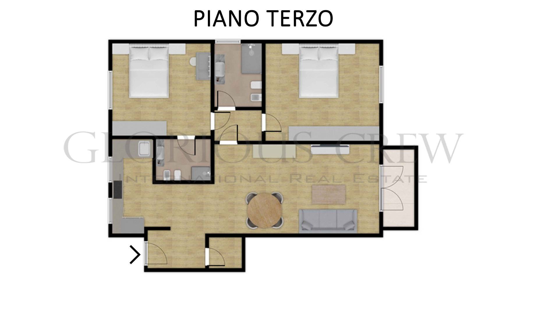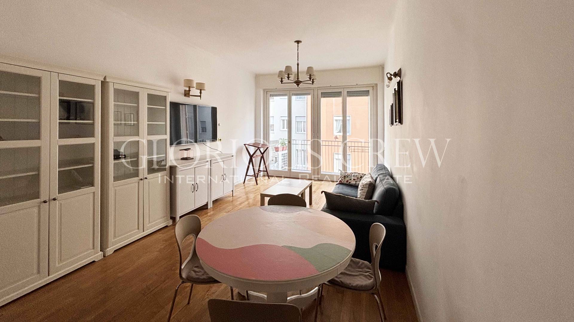 FURNISHED THREE-ROOM APARTMENT FOR RENT – VIA OLMETTO 10 • MilanIn one of the most elegant and central areas of Milan, we offer for rent a refined fully furnished three-room apartment, located on the third floor of a prestigious building with elevator. The double exposure ensures excellent natural light throughout the day.