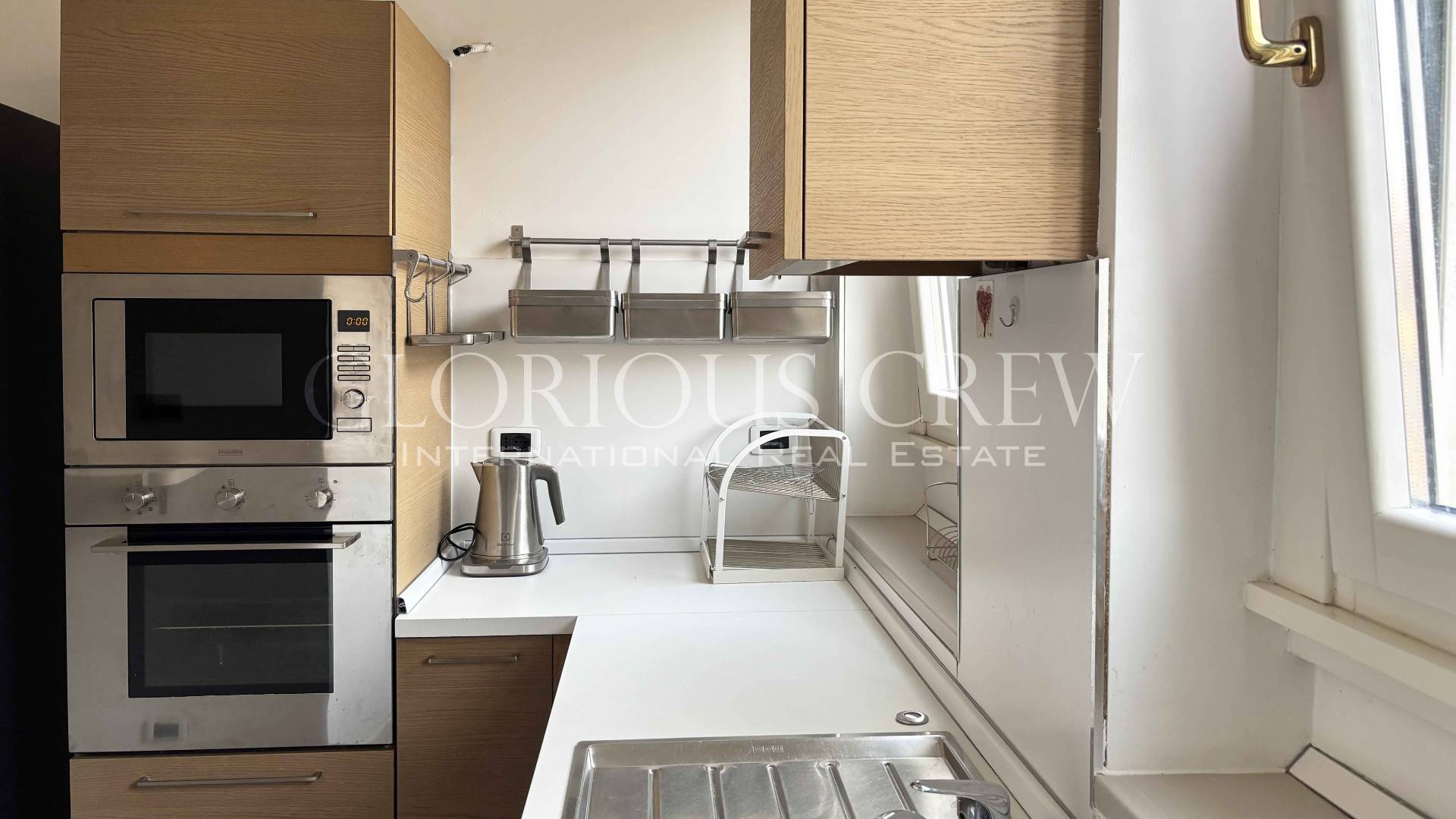 The kitchen is fully equipped with the latest-generation appliances and designed to combine functionality and style.
