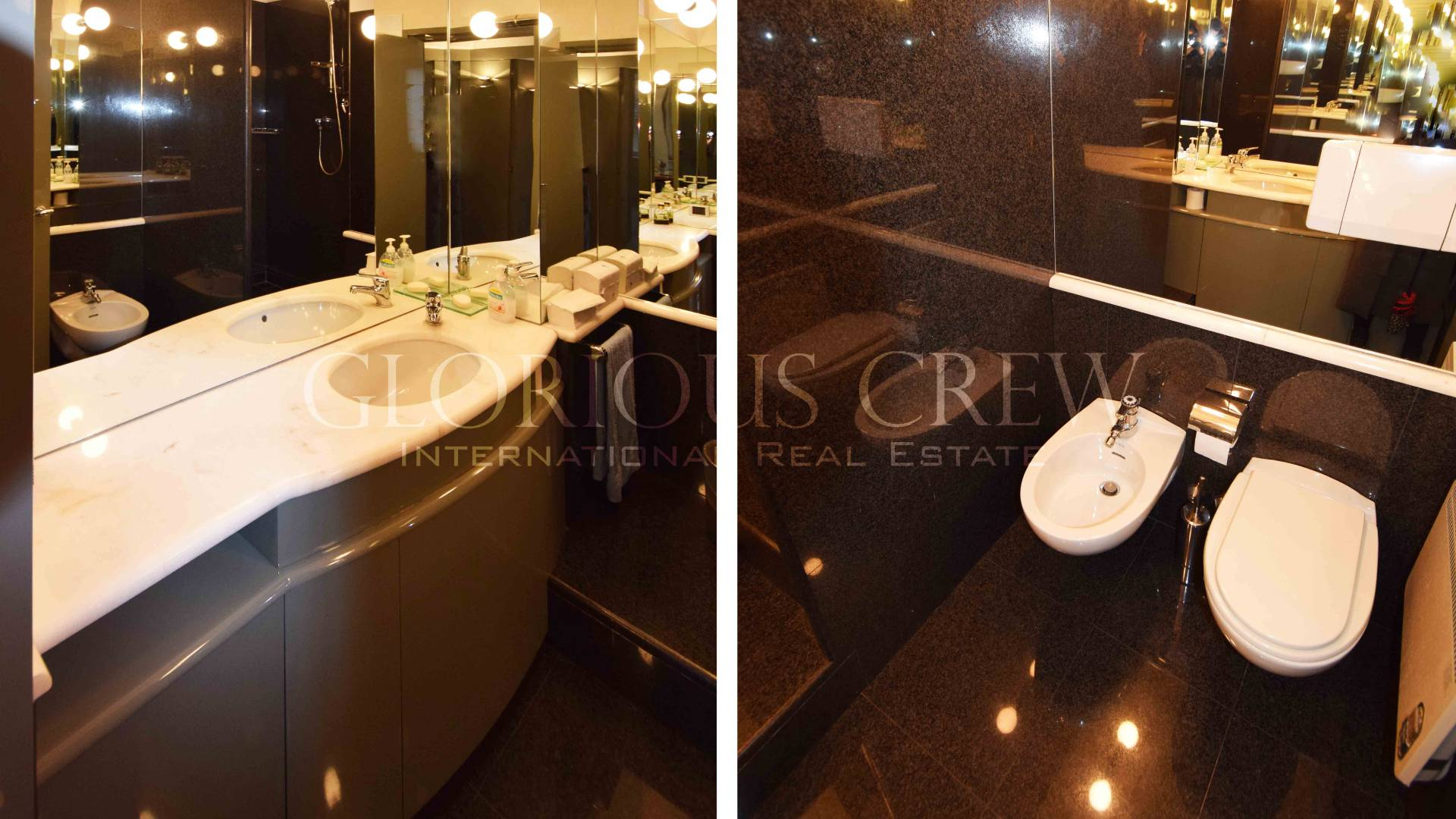 Complete with functional wardrobes for archiving purposes, it is perfectly furnished with custom-made furniture, equipped with air conditioning, wired and with a relevant cellar.