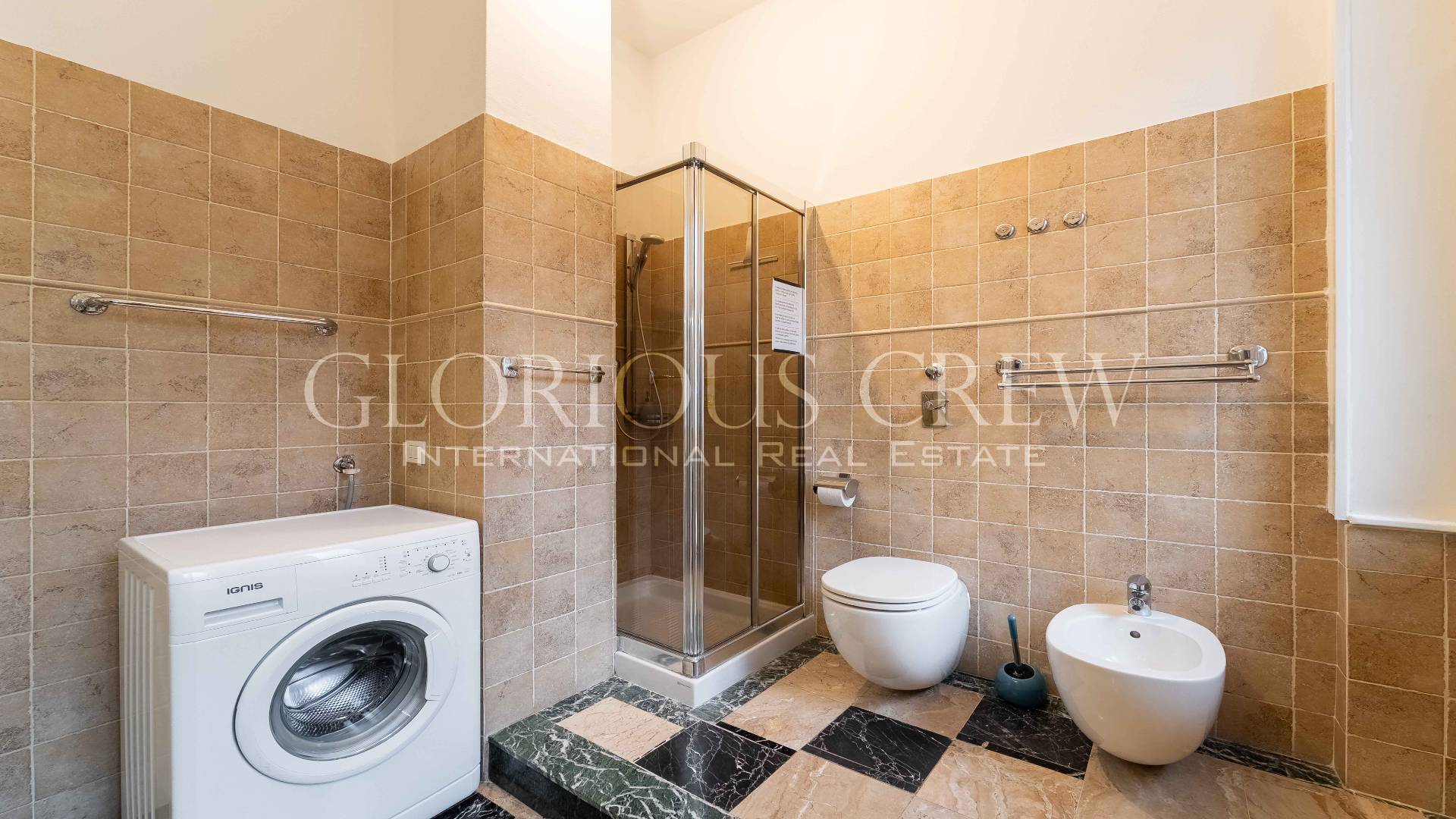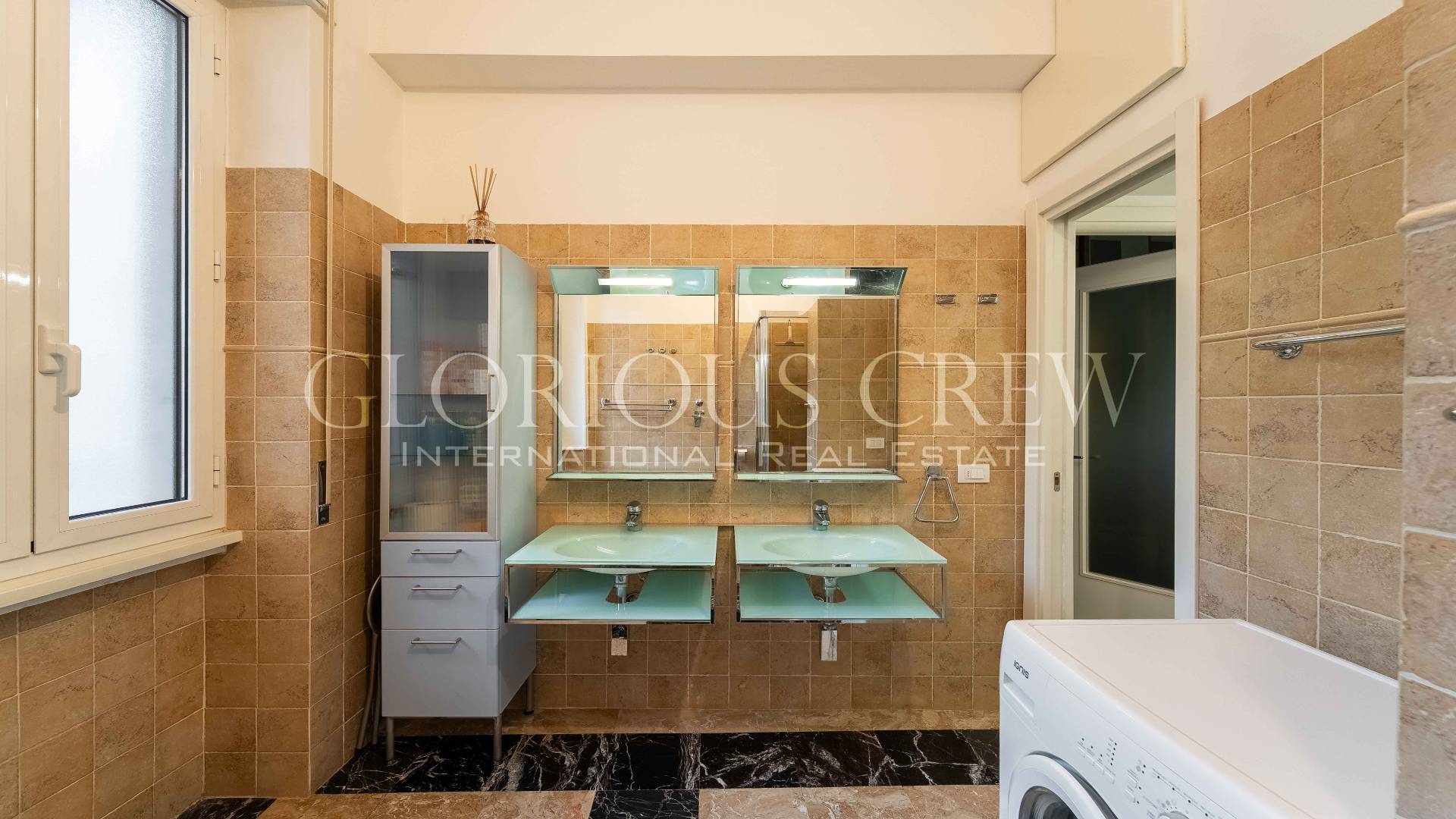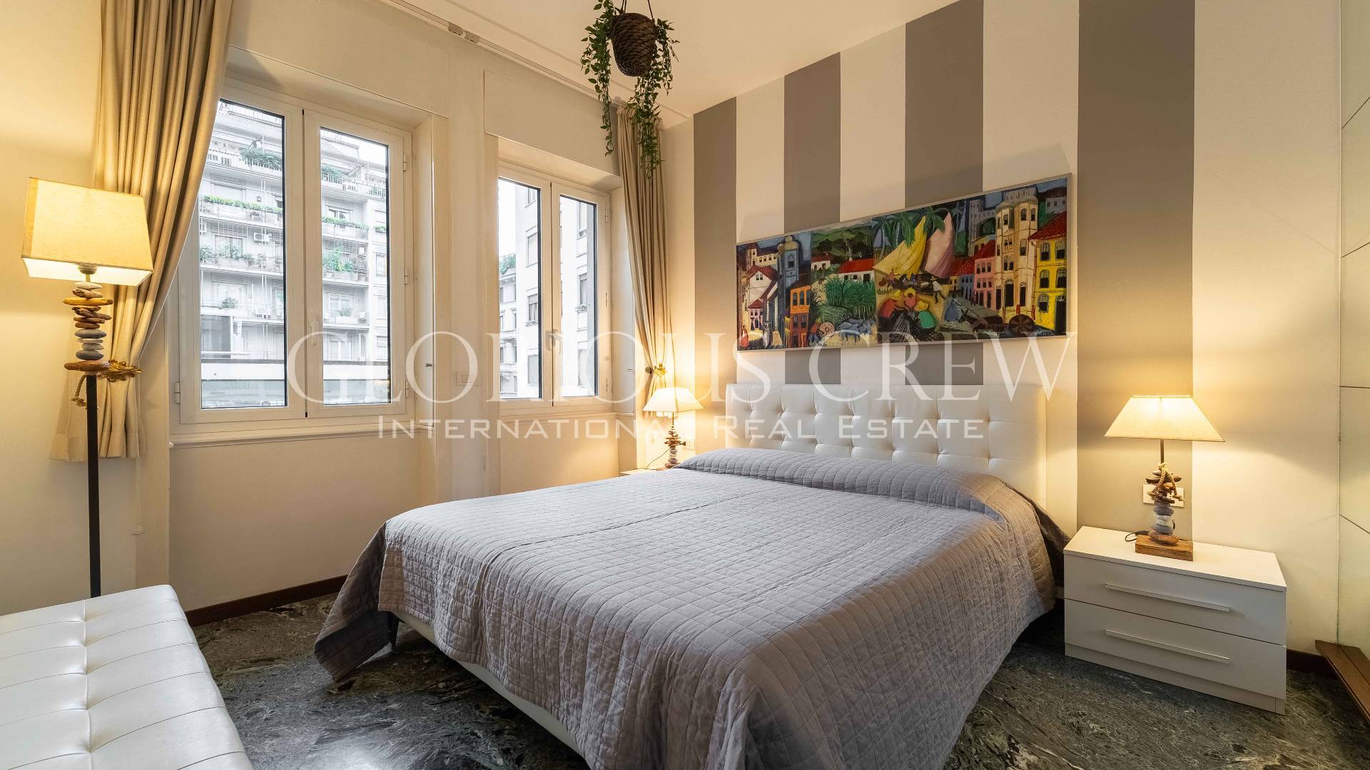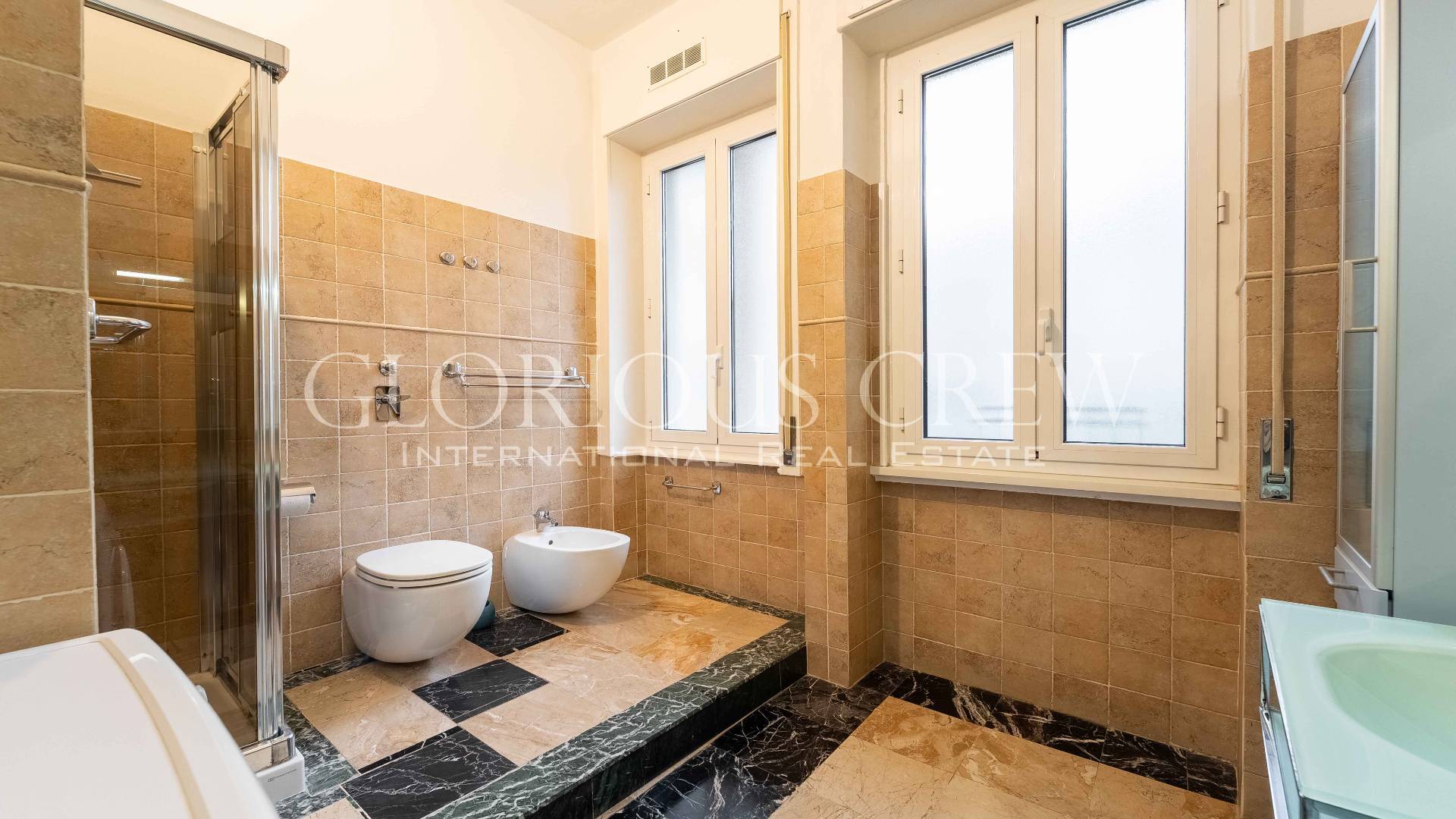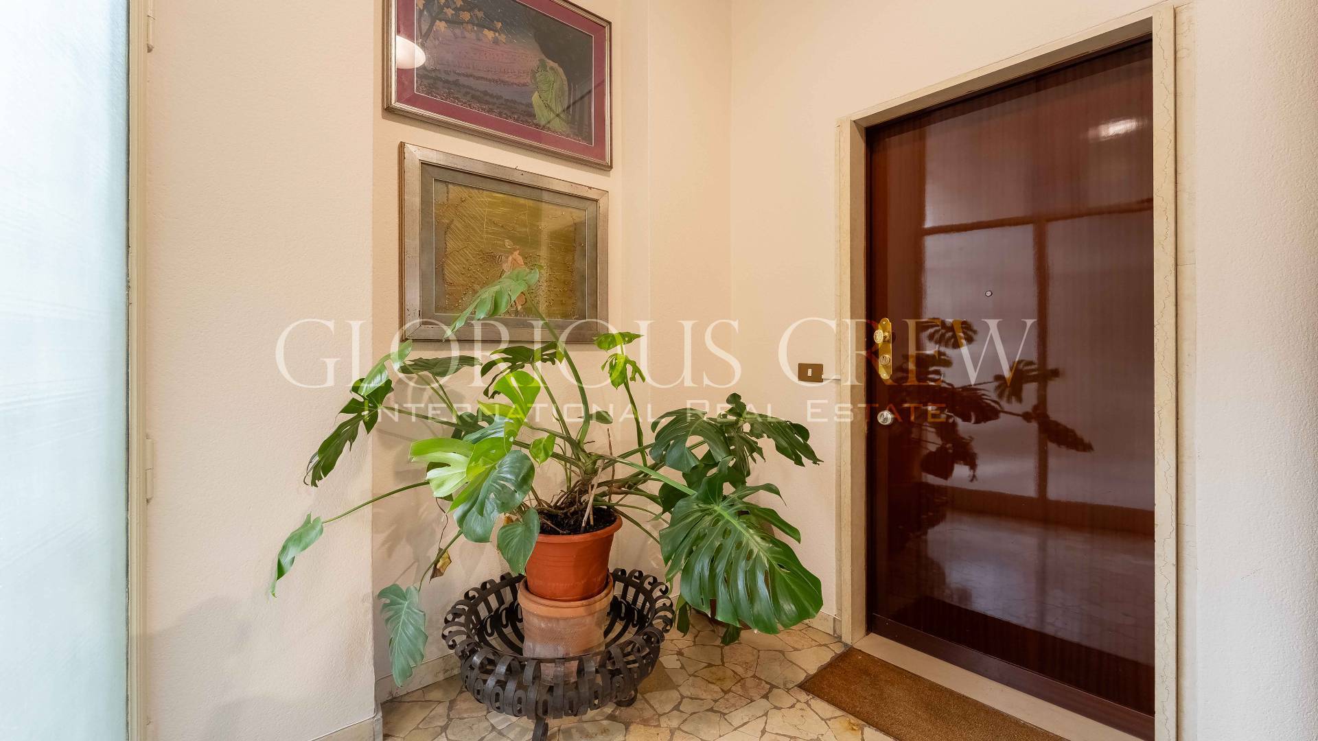 Although located on the first floor, the apartment enjoys excellent privacy thanks to its position, with views on one side over the square and on the other over the condominium garden.