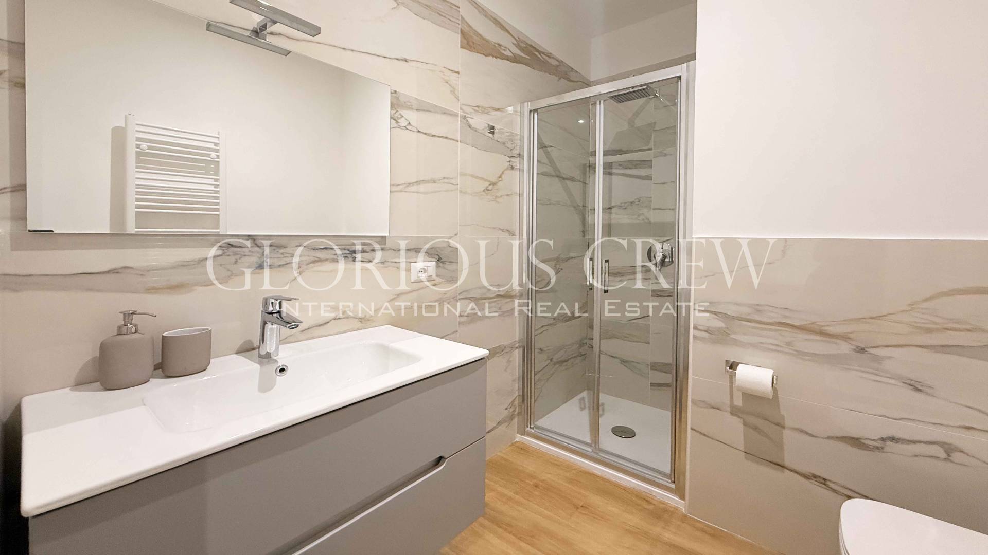 The renovation included all systems. The apartment is equipped with air conditioning, double-glazed windows, electric shutters and custom-made furniture, and is ready to move in with no further work required.