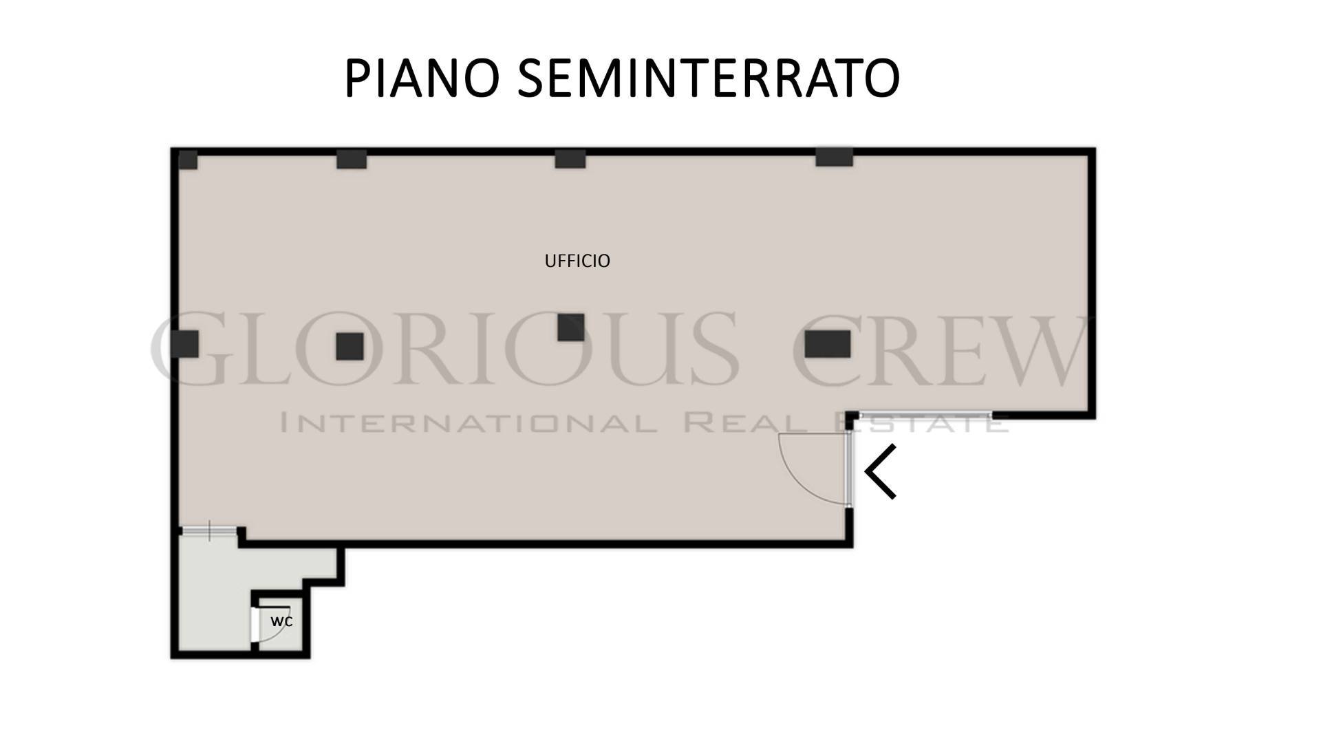 The property benefits from a quiet internal exposure and is currently arranged as a single open space, allowing maximum flexibility and easy customization of the interiors, making it ideal for a wide range of professional activities.