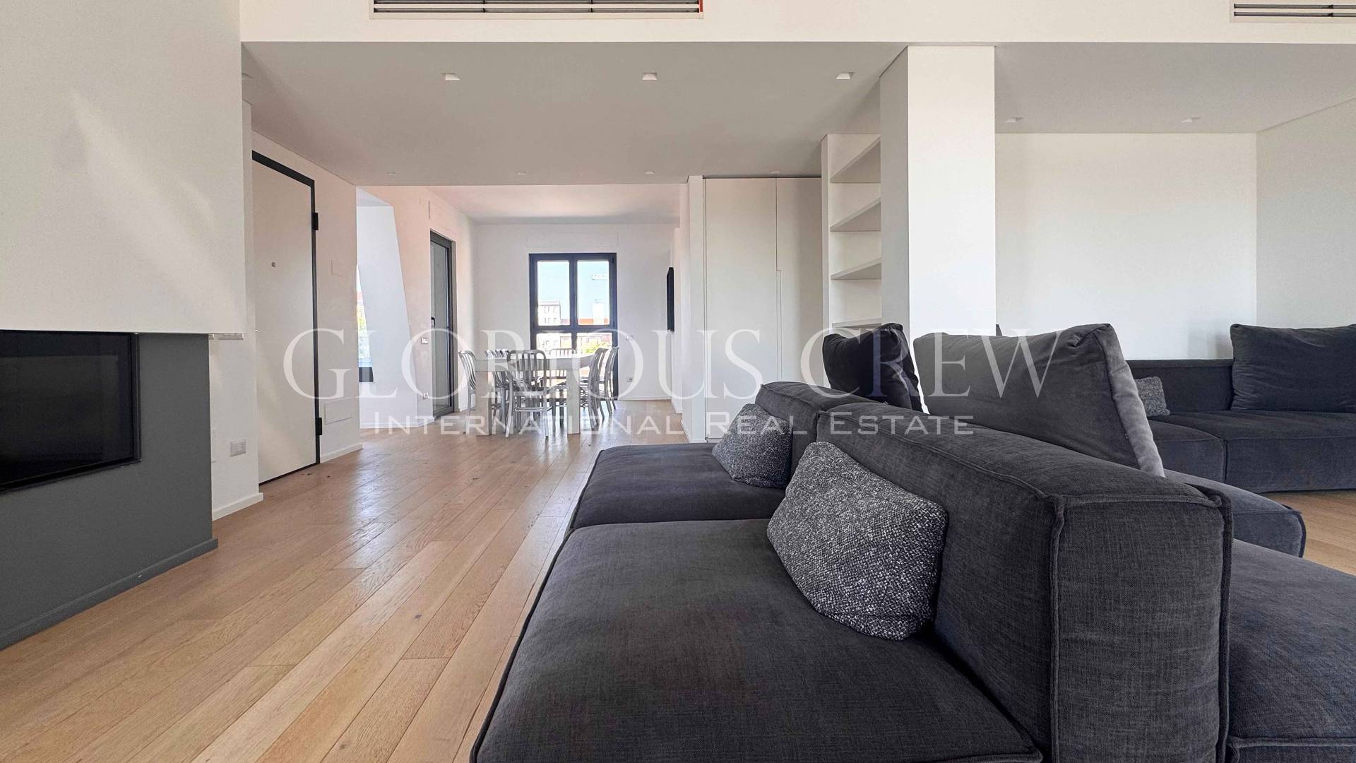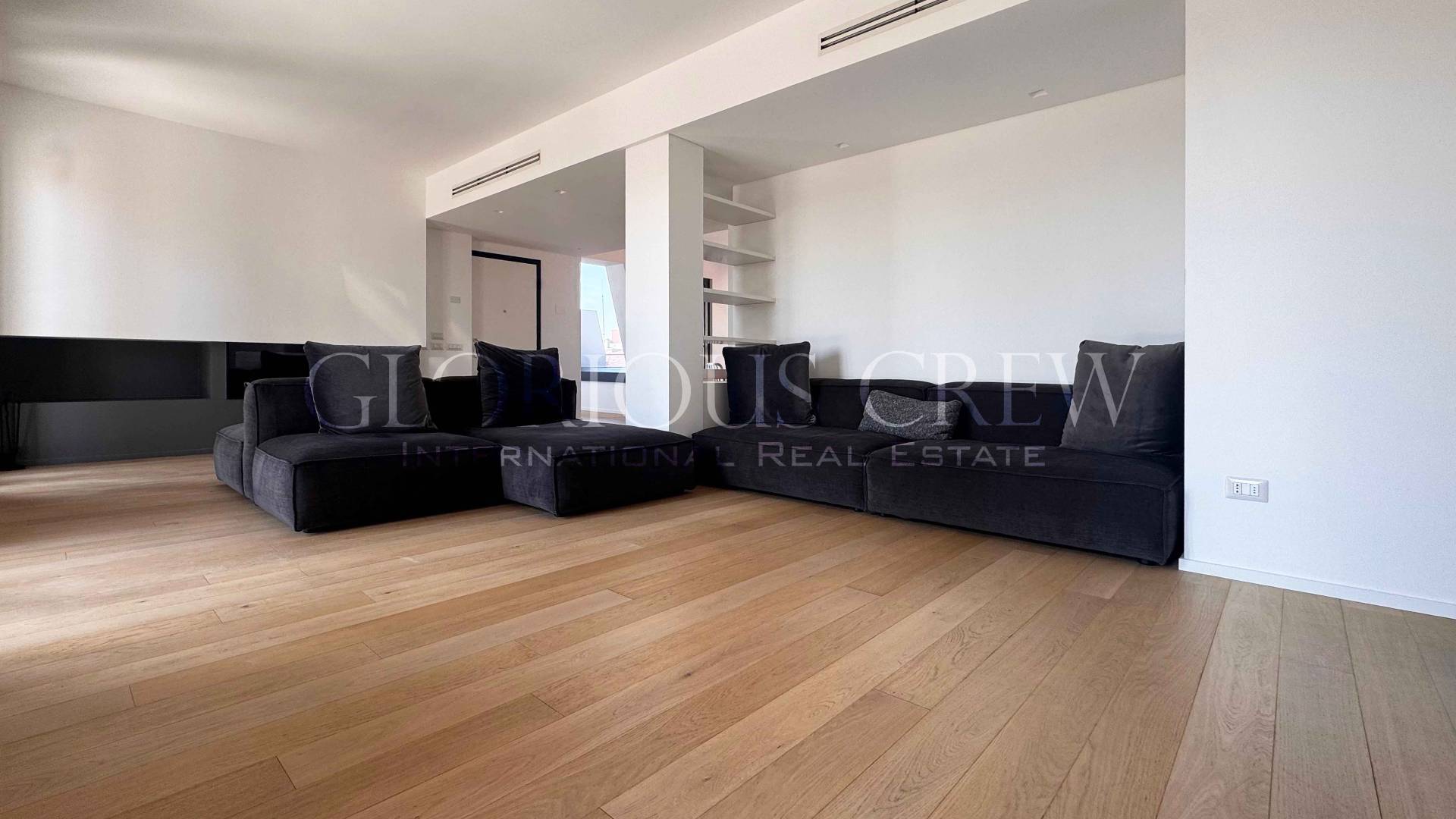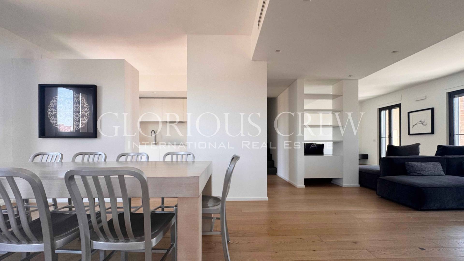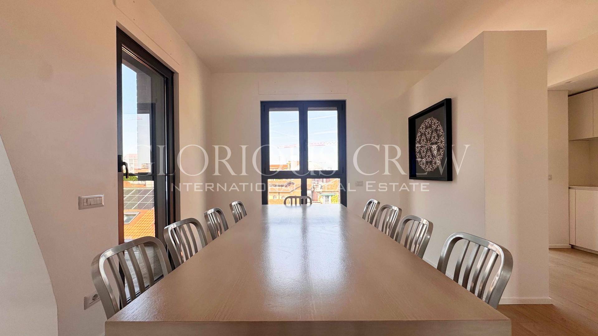 In one of the liveliest and fastest growing areas of Milan, a few steps from the Prada Foundation and the city's new cultural and creative hub, we offer for rent an elegant, completely renovated penthouse and super-penthouse, located on the top floor of a modern building from 2014.
