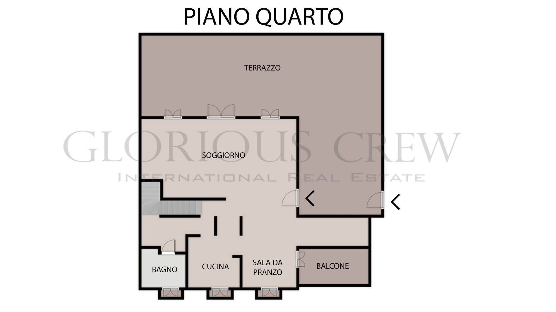 The apartment, of about 150 square meters distributed on two levels, is located on the fifth and last floor with elevator, and boasts large, bright and finely finished spaces. On the first level there is a scenic living area with double living room, dining area, partially open kitchen and guest bathroom. A balcony and a large panoramic terrace complete the floor, offering an open and suggestive view of the Milanese skyline.
