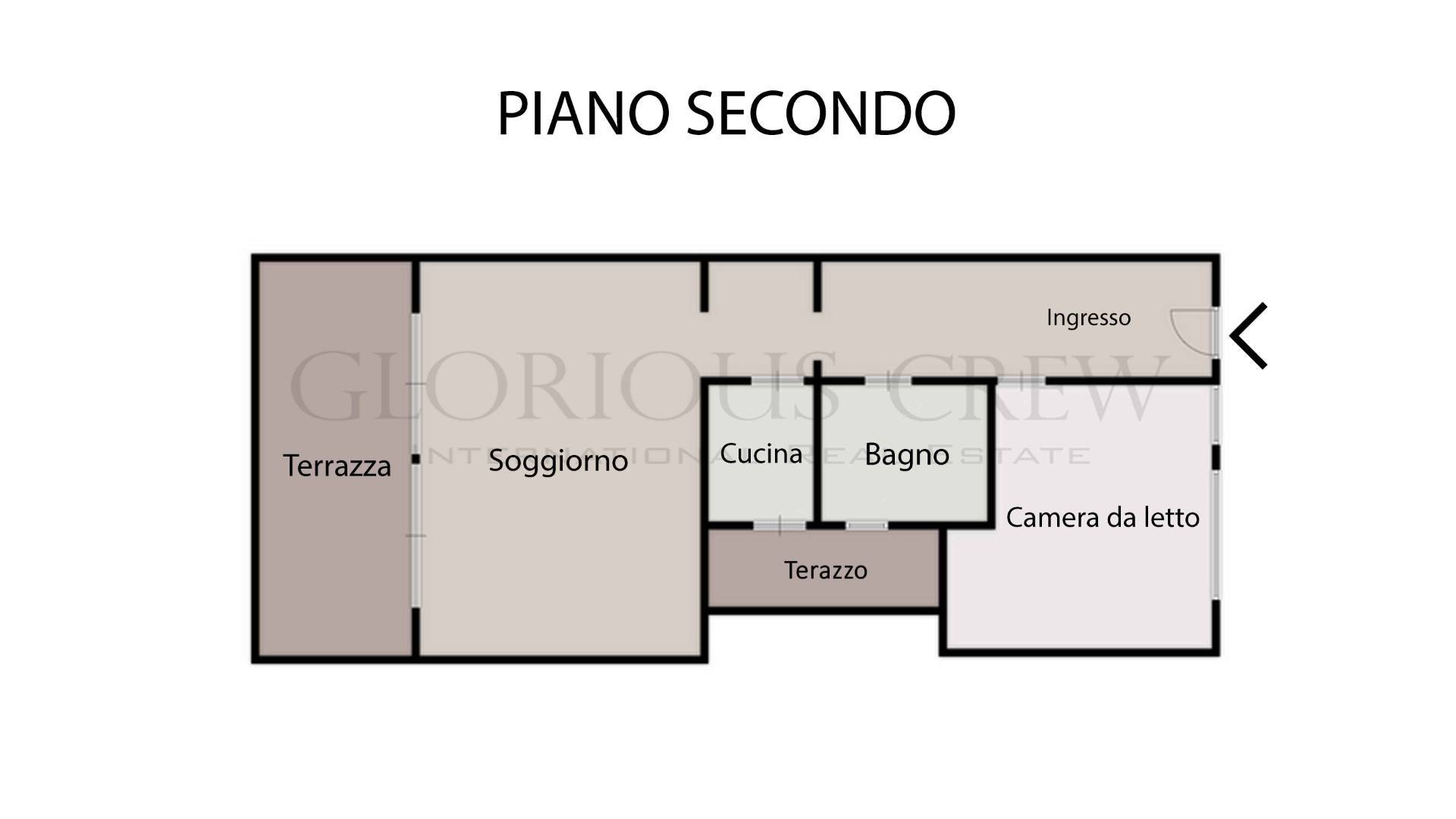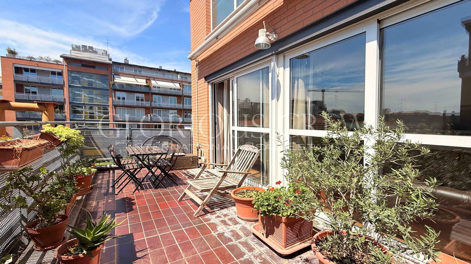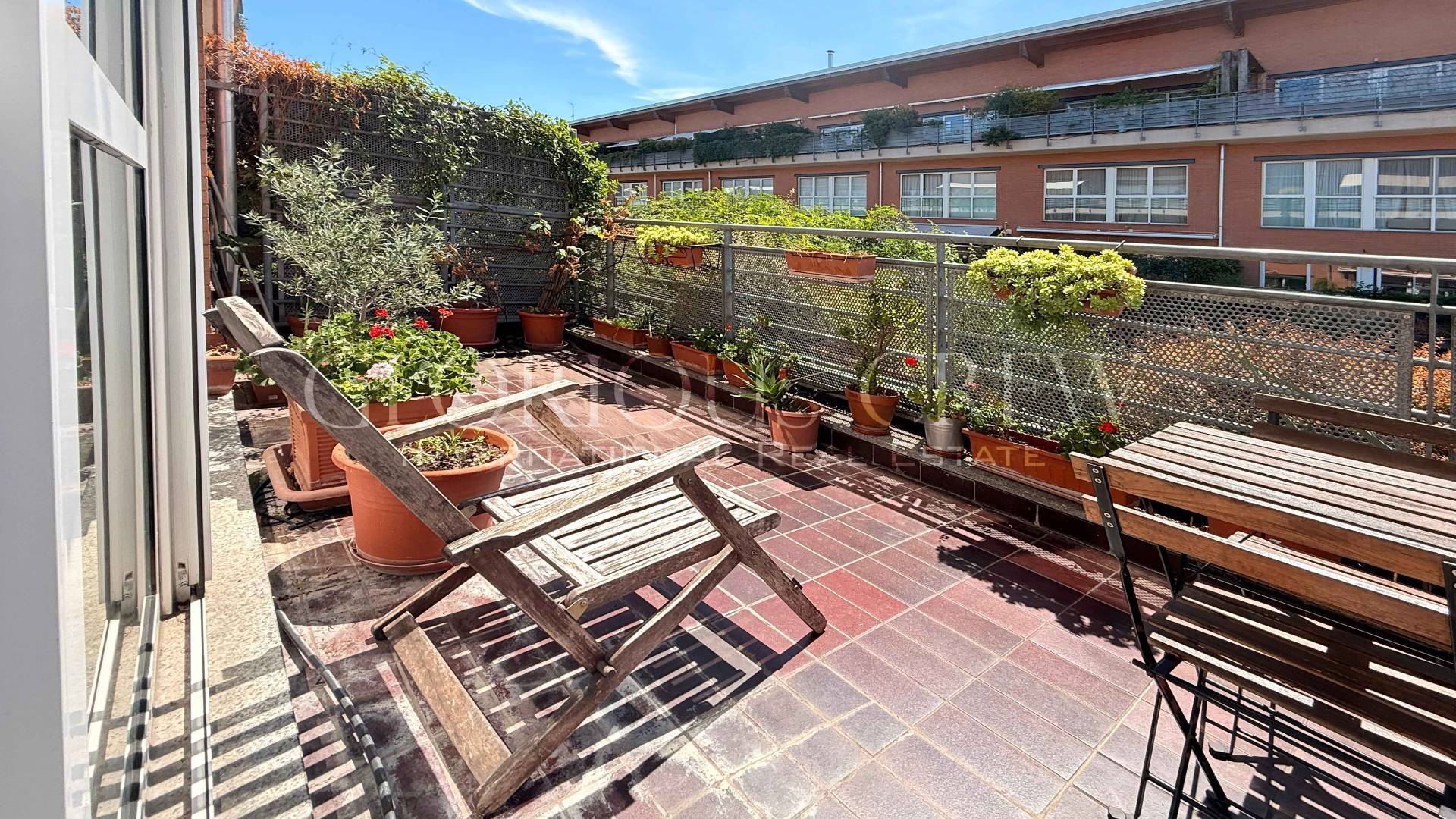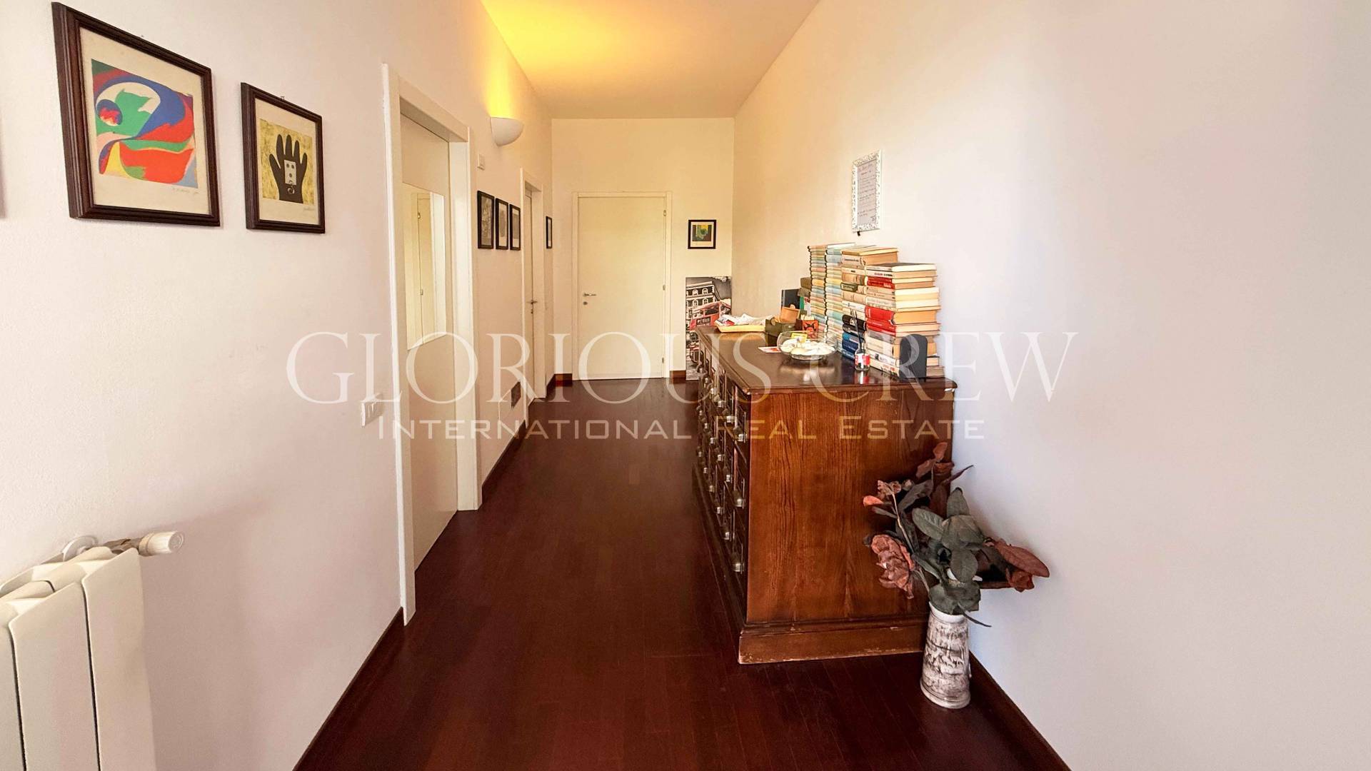 The total floor area is approximately 90 square meters, currently divided into a double bedroom and a living area consisting of a bright double living room (which could be converted into a second bedroom) and a magnificent terrace with trees open on two sides, offering pleasant views and ventilation, ideal for summer days. The kitchen leads to a comfortable internal balcony equipped as a laundry room. The bathroom has a window. The rooms, finely furnished and meticulously designed, offer an elegant and comfortable atmosphere.