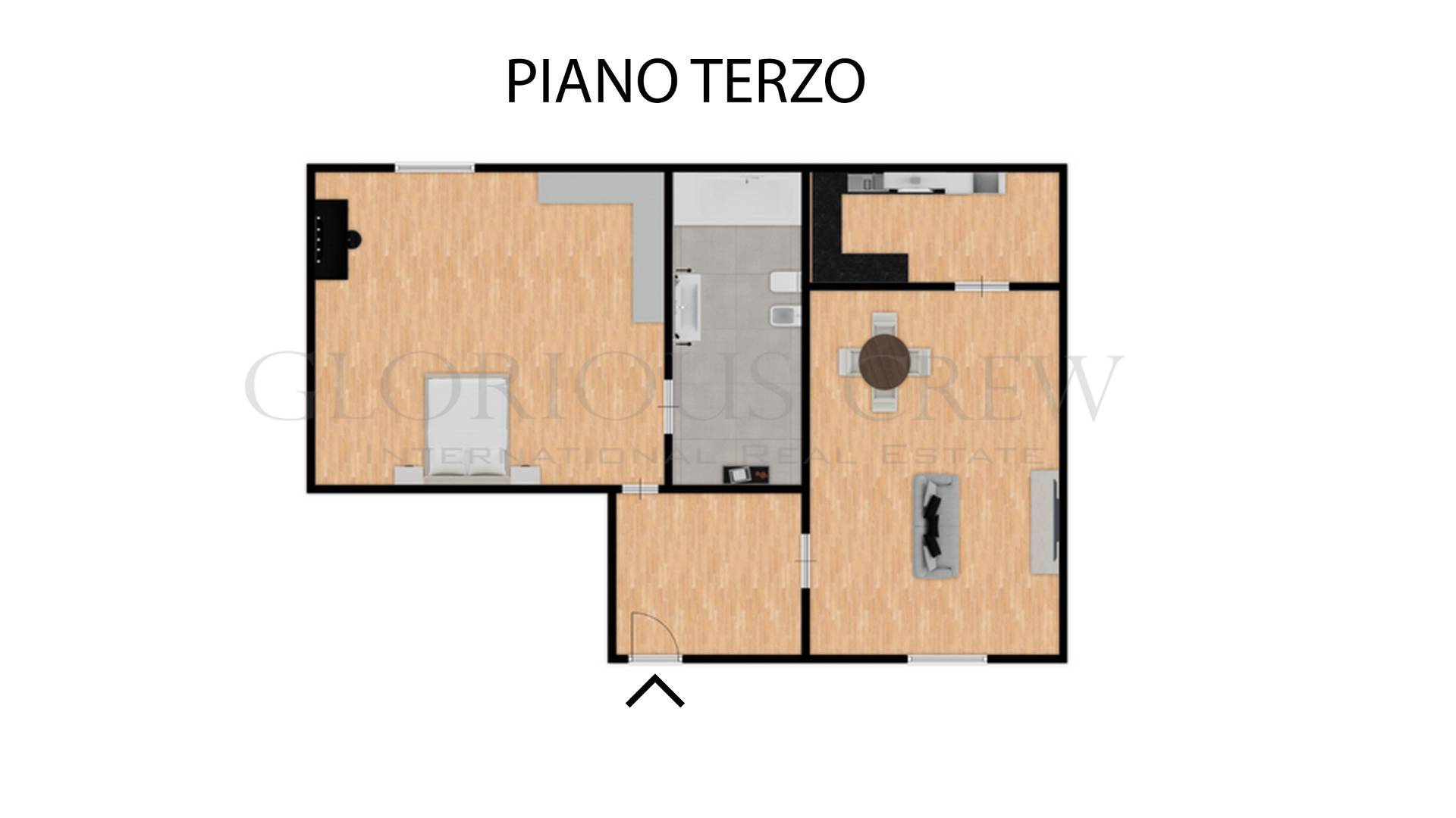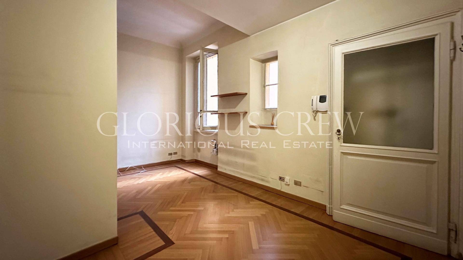 L’appartamento, posto al terzo piano e affacciato sul tranquillo cortile interno di un elegante palazzo d’epoca, è composto da: