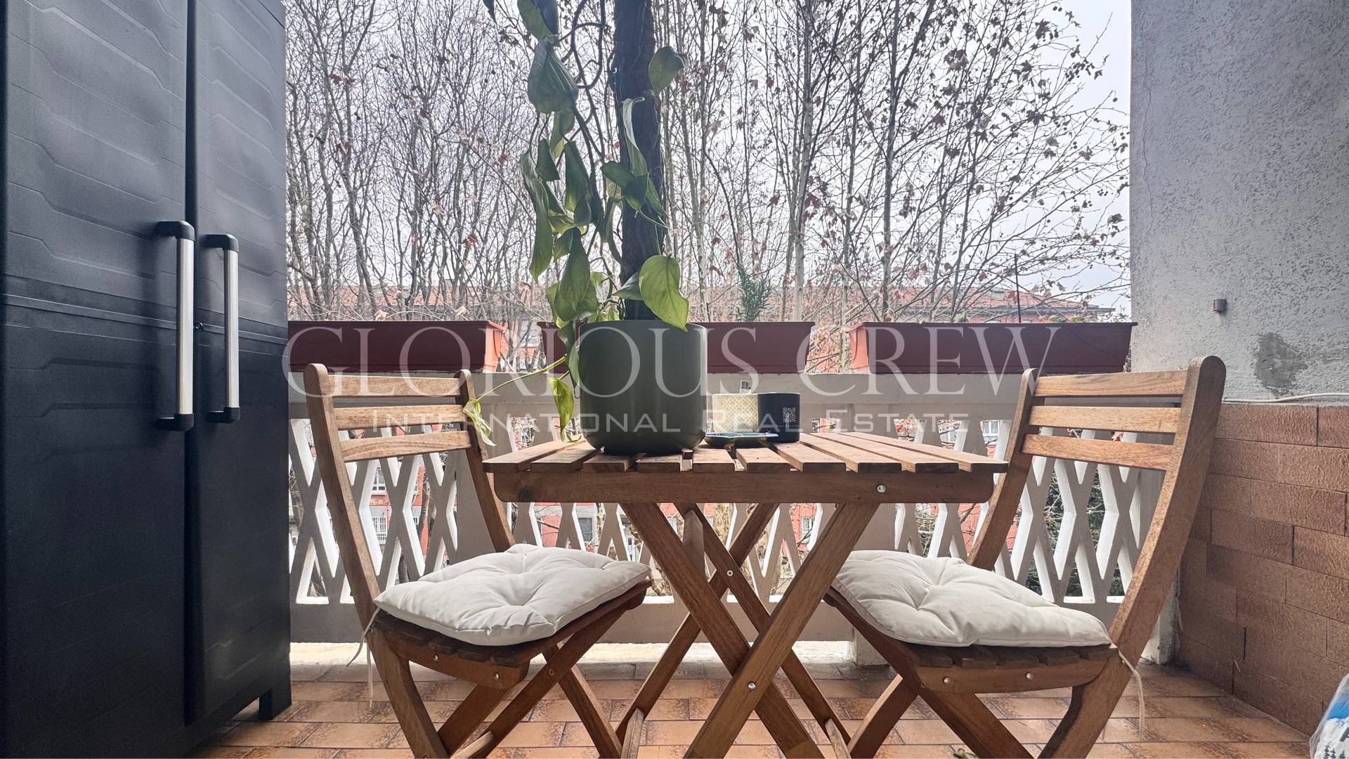 Il terrazzino, molto curato, gode di un affaccio sul cortile condominiale interno, particolarmente verde e silenzioso, ideale per colazioni all’aperto o momenti di tranquillità.