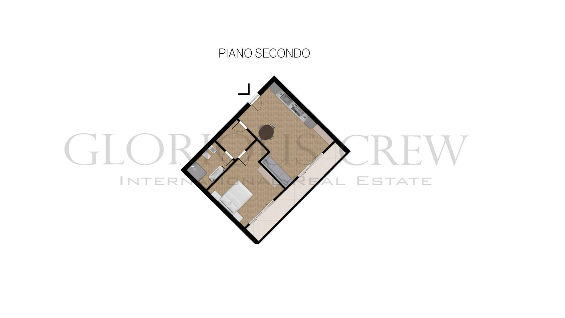 L’appartamento, completamente arredato e corredato, si distingue per ambienti luminosi e ben distribuiti: la zona giorno accoglie un soggiorno con cucina a vista funzionale e conviviale, mentre la camera da letto matrimoniale assicura comfort e riservatezza. Il bagno, moderno e ben rifinito, è dotato di comoda doccia.