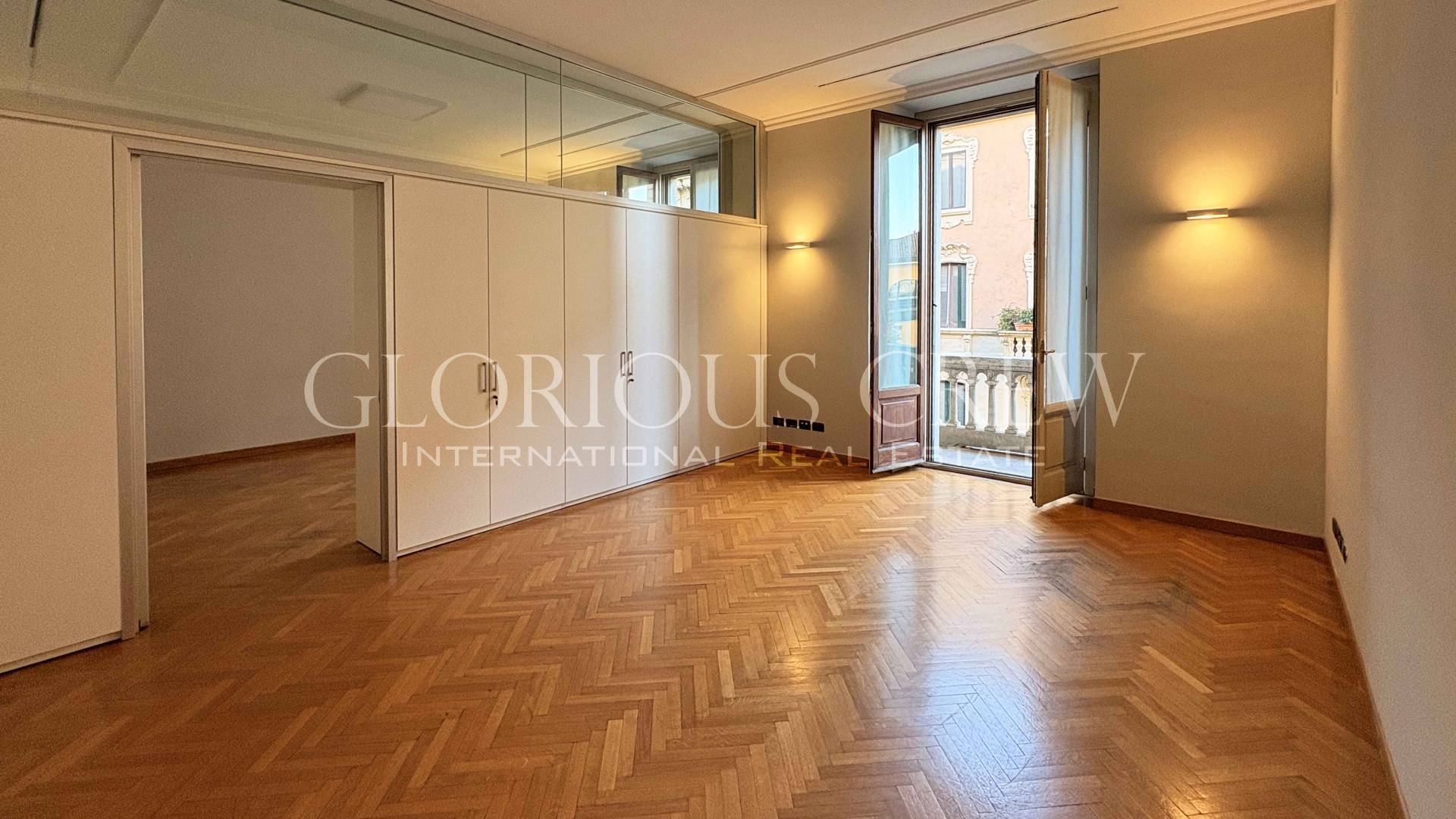 L’ufficio, posto ad angolo, gode di ampie finestre e balconi affacciati sulle eleganti e tranquille Via Panzacchi e Via De Togni. I pavimenti in parquet d’epoca a spina di pesce e gli infissi in legno con doppi vetri conferiscono fascino e comfort, rendendo l’unità ideale per studi professionali o sedi direzionali di società strutturate.