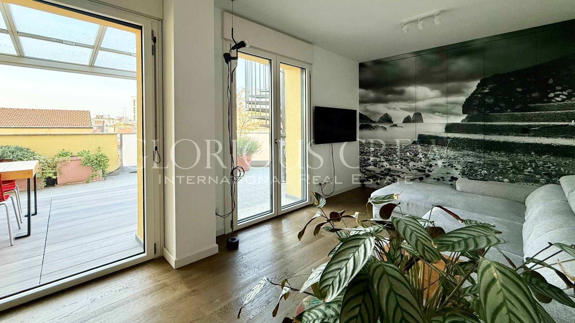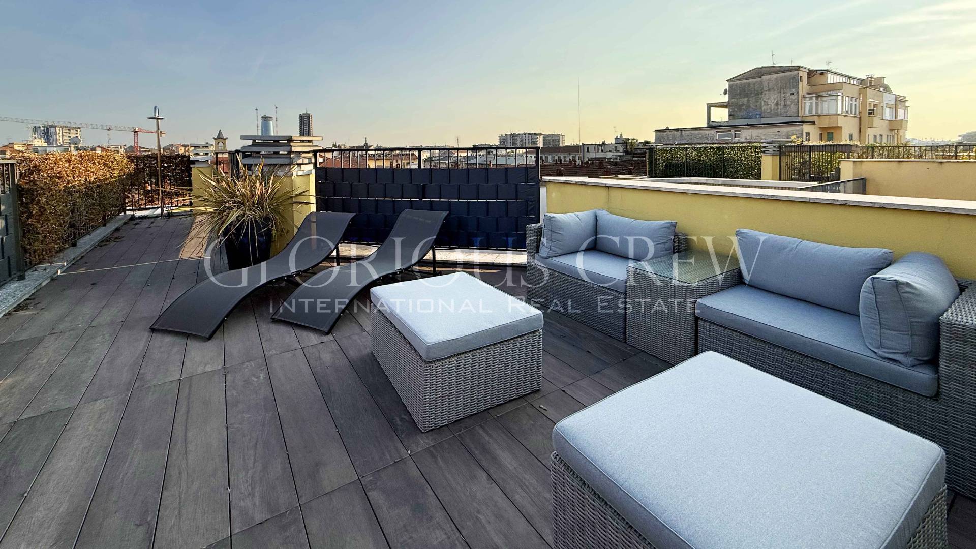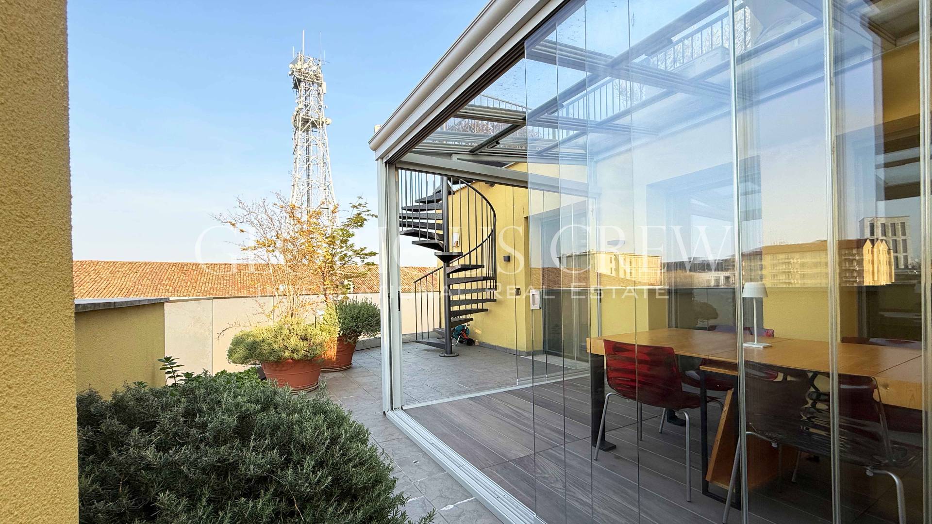 L’attico, in condizioni impeccabili, gode di una straordinaria vista a 360° sulla città grazie agli ampi spazi esterni: un terrazzo di circa 30 mq al piano e un lastrico solare di 50 mq al settimo livello, per un totale di 80 mq outdoor da vivere in ogni momento della giornata. Sul rooftop è inoltre presente una doccia esterna, fantastica per concludere la giornata, con suggestiva vista sul Duomo.