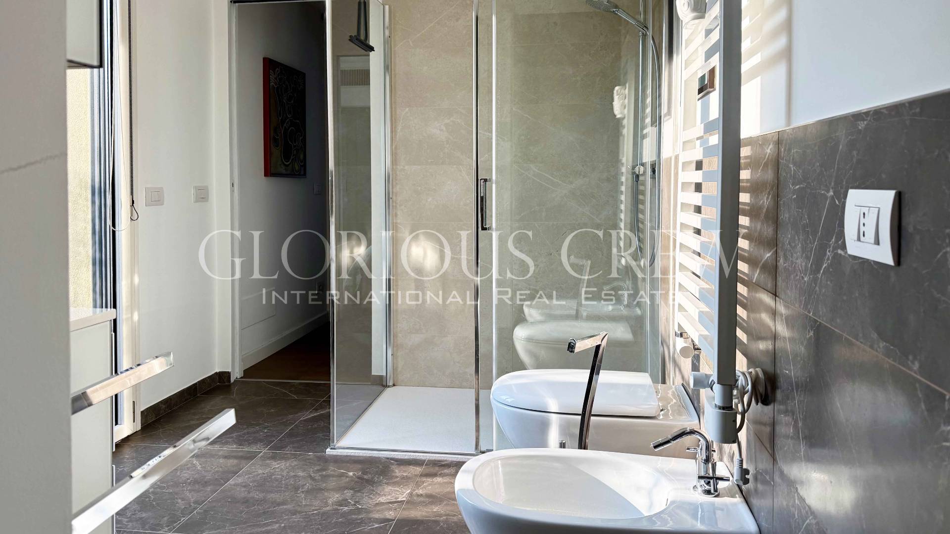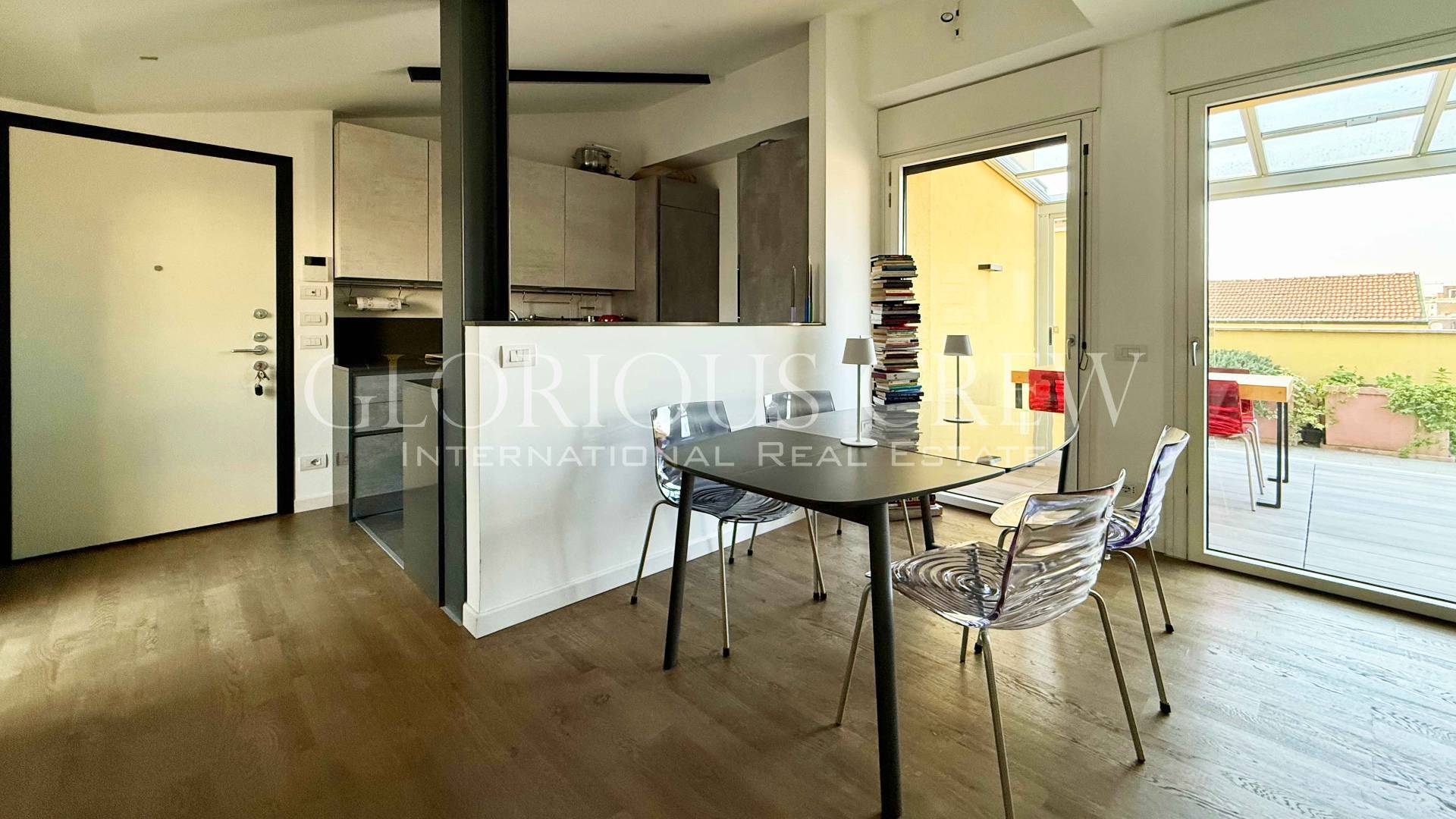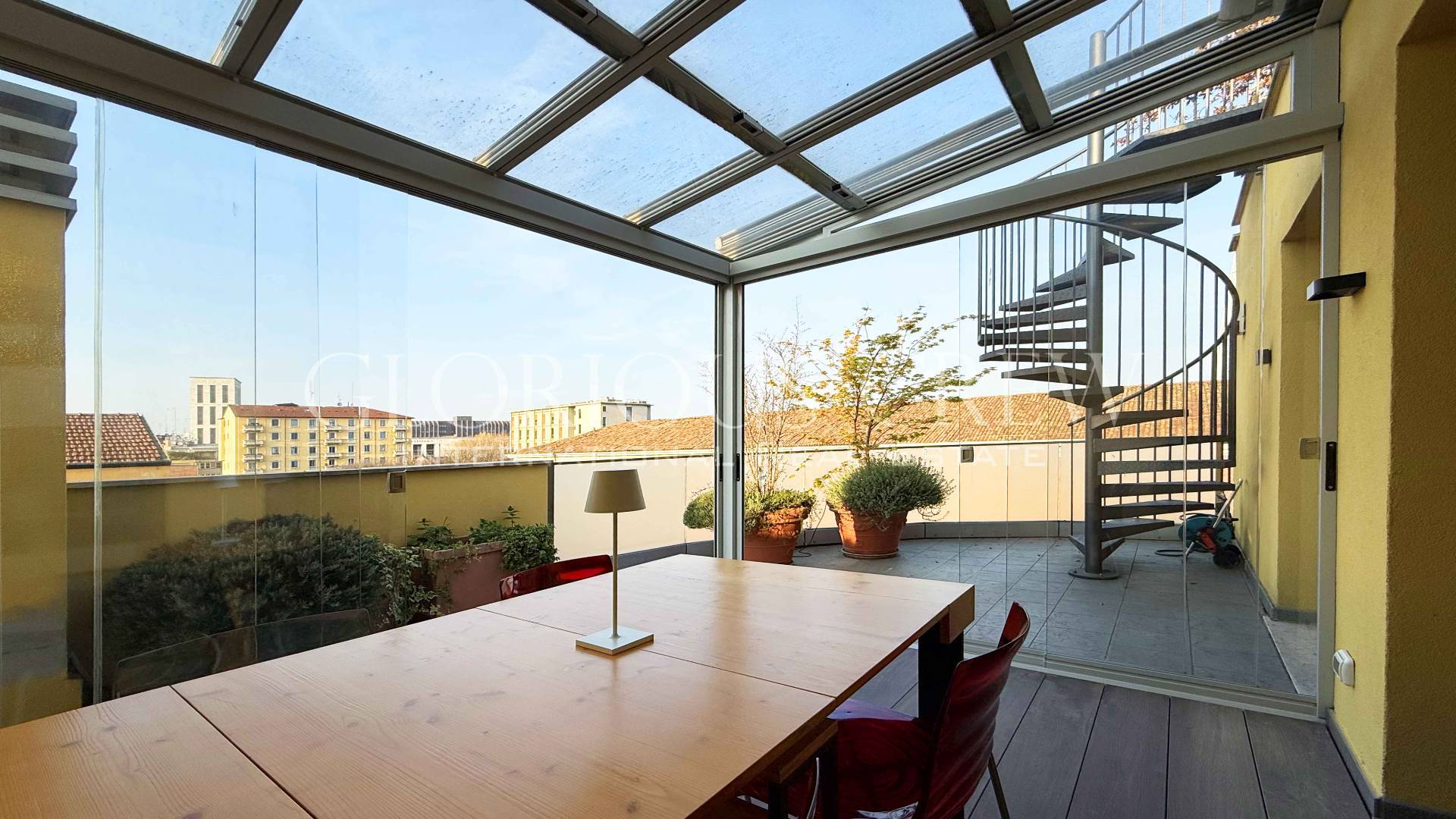 L’attico, in condizioni impeccabili, gode di una straordinaria vista a 360° sulla città grazie agli ampi spazi esterni: un terrazzo di circa 30 mq al piano e un lastrico solare di 50 mq al settimo livello, per un totale di 80 mq outdoor da vivere in ogni momento della giornata. Sul rooftop è inoltre presente una doccia esterna, fantastica per concludere la giornata, con suggestiva vista sul Duomo.