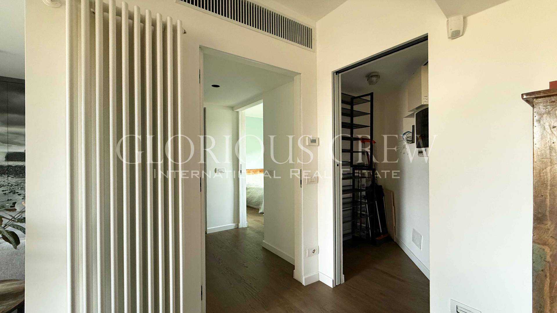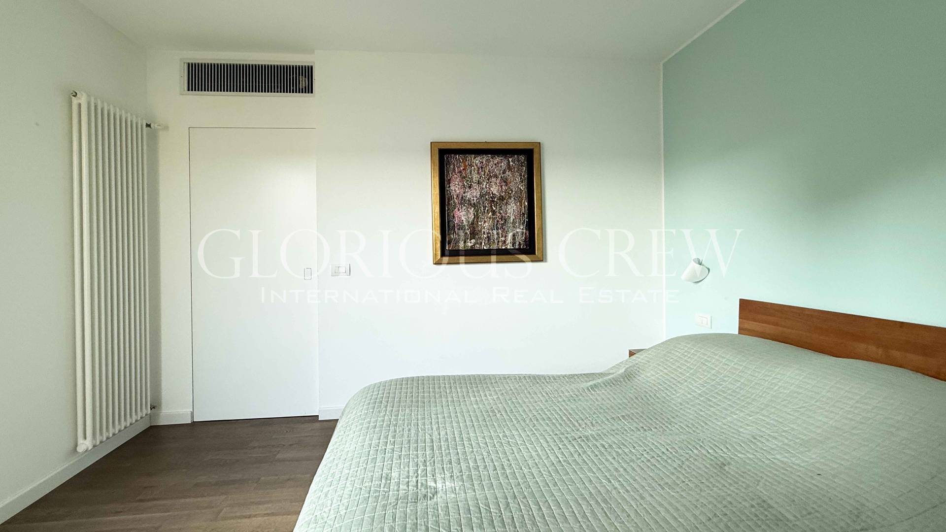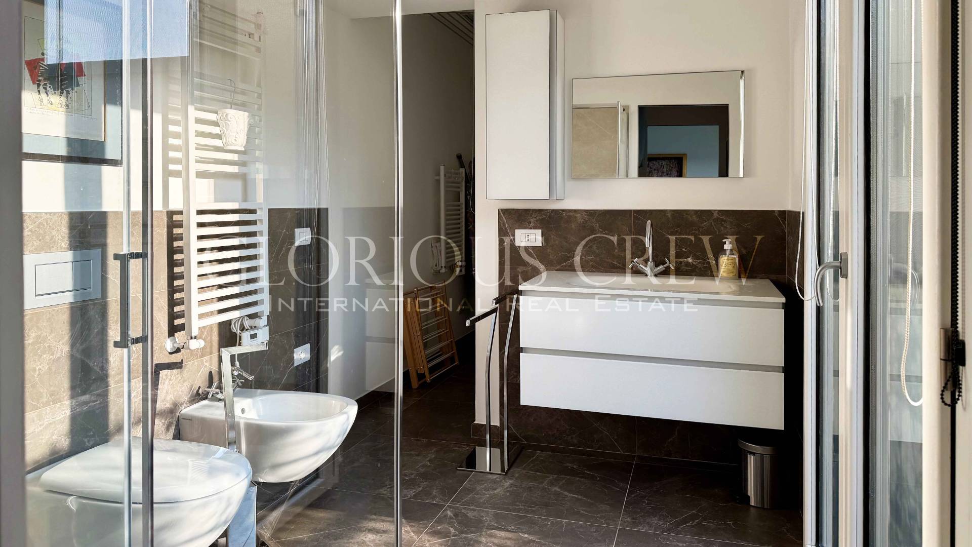 Un disimpegno conduce alla zona notte, composta da un primo bagno con doccia e da una camera padronale luminosa, dotata di cabina armadio, bagno en suite e affaccio su un ampio balcone riservato.