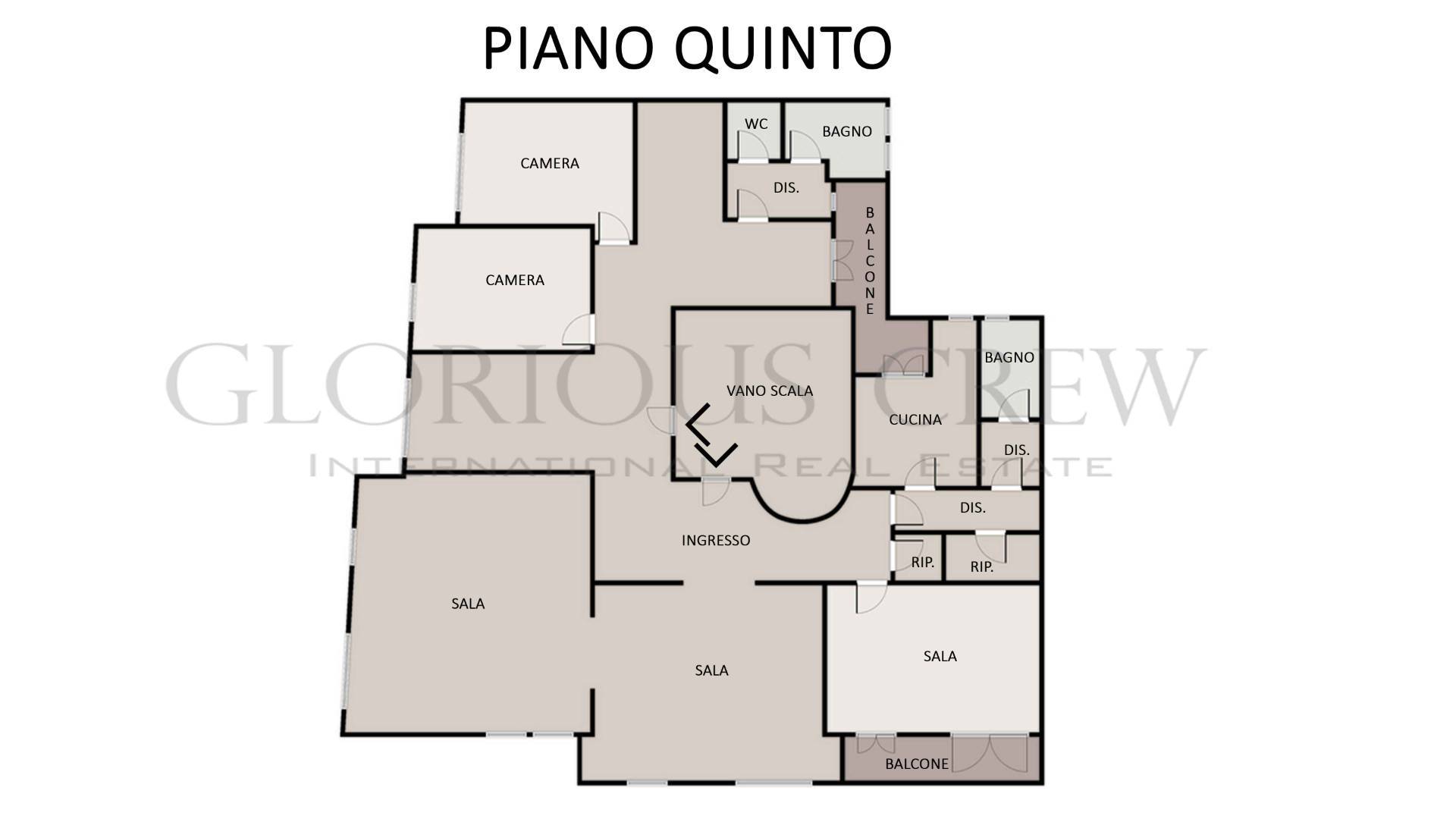 Sita al quinto piano di un prestigioso palazzo degli anni 50 a firma dell'Architetto Renato Radici con Lucio Fontana, la proprietà si sviluppa su una superficie di circa 300 mq e gode di un raro triplo affaccio, e di una splendida vista panoramica sugli iconici grattacieli di Porta Nuova, e su Piazza San Gioachimo.