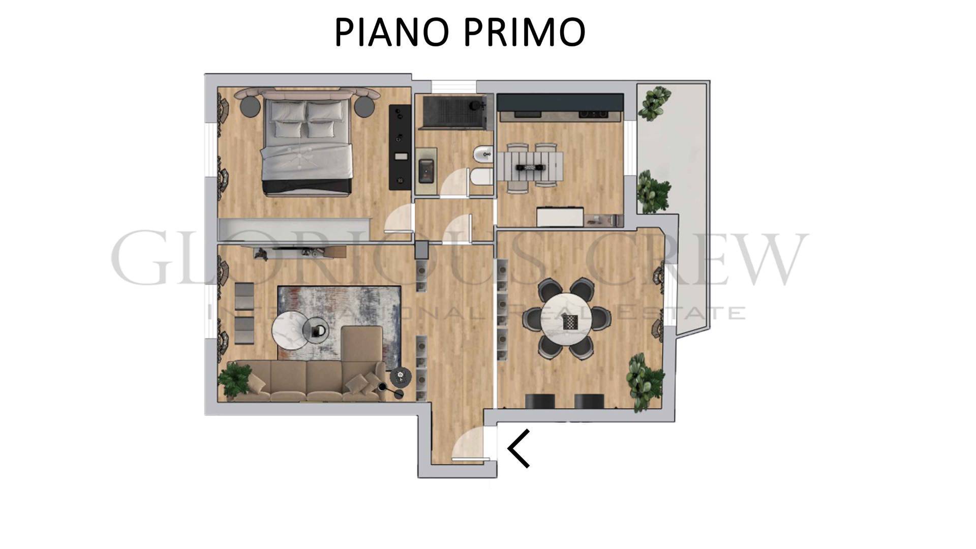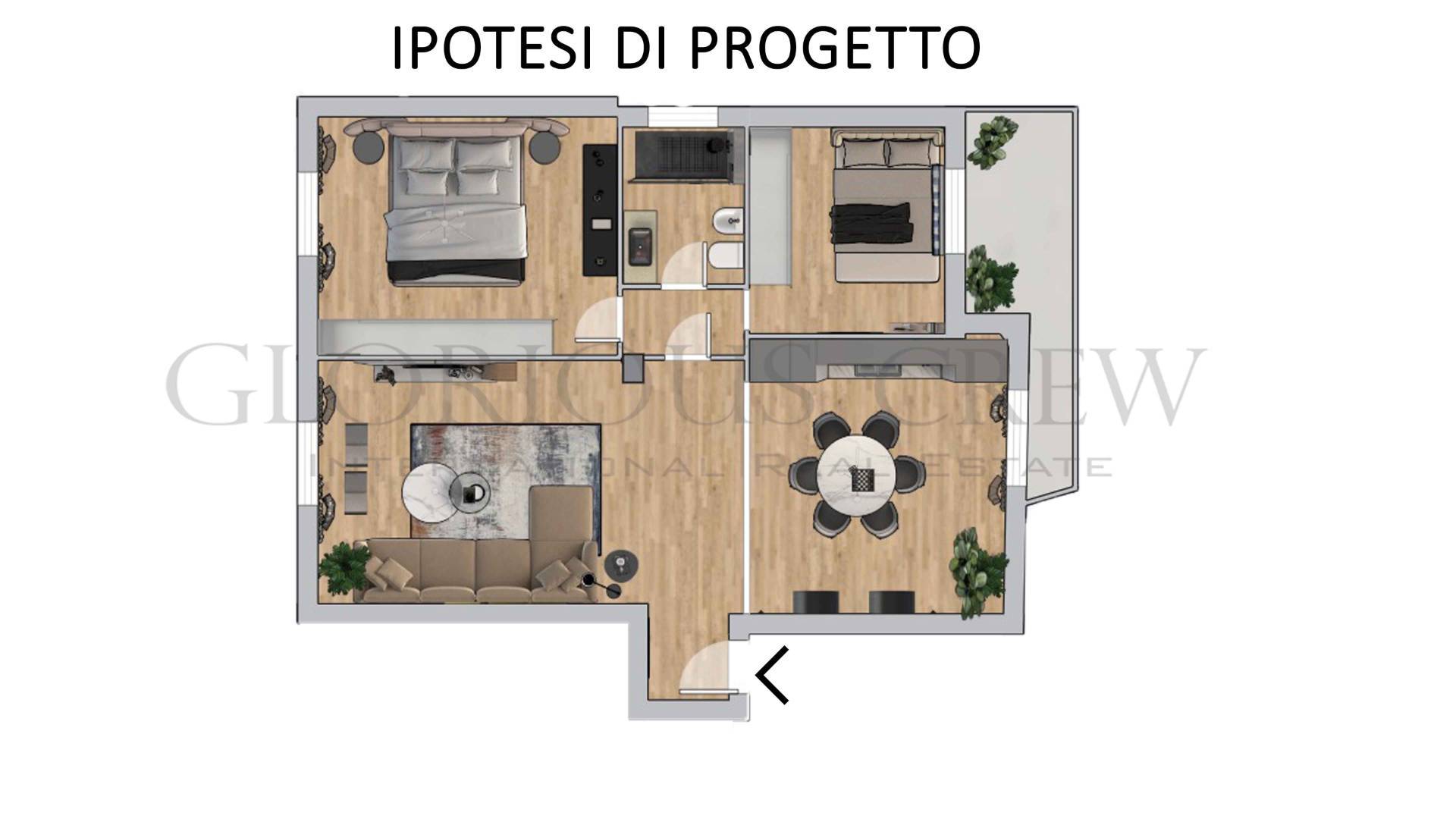 Attualmente composto da ingresso, ampio soggiorno doppio, cucina separata, una camera da letto e un bagno, l’appartamento offre ampie possibilità di ridistribuzione interna, grazie alla planimetria regolare e alla presenza di numerose finestre.