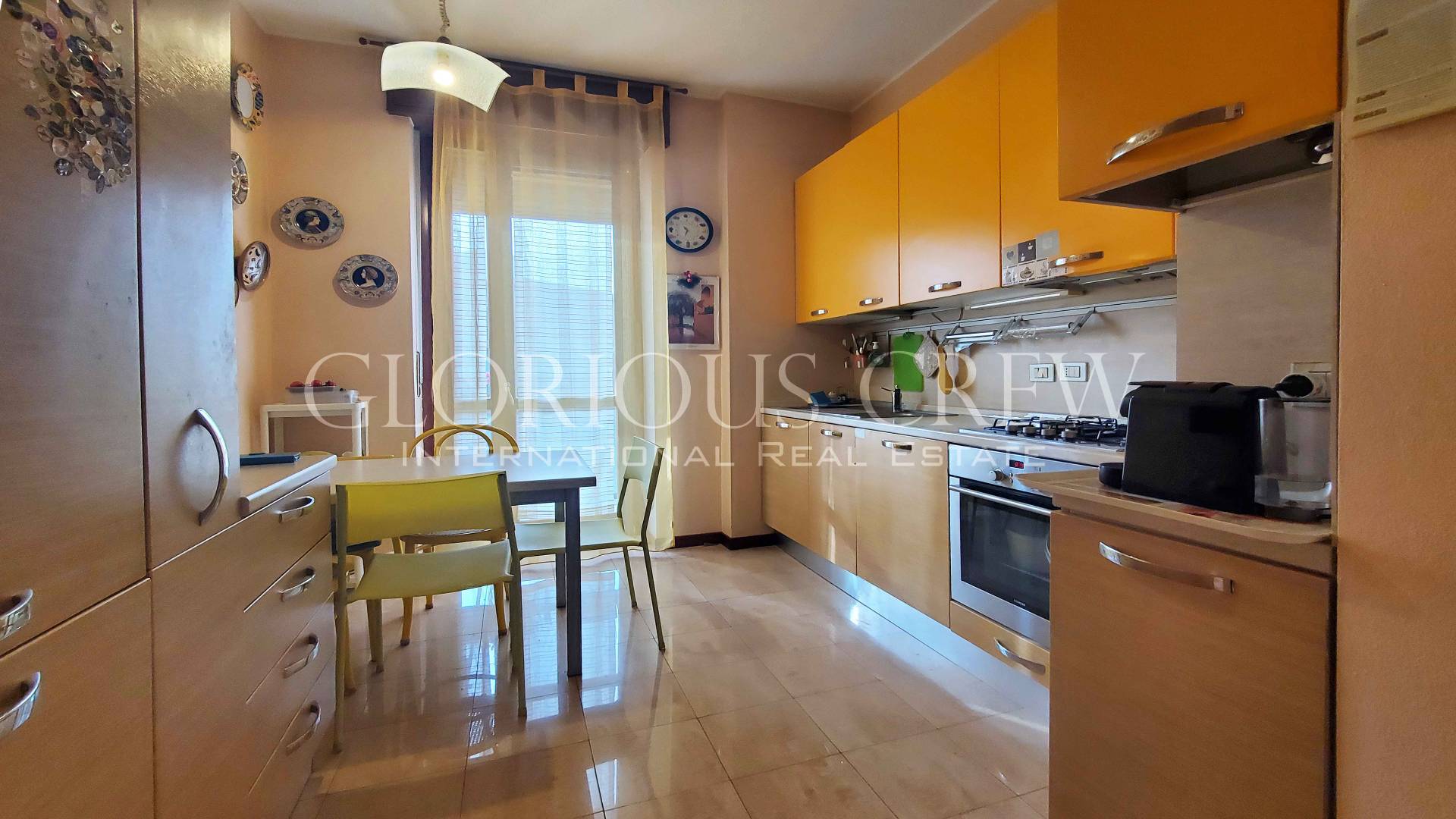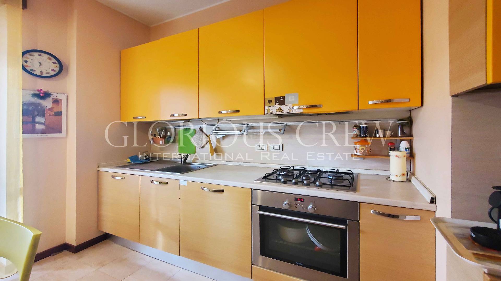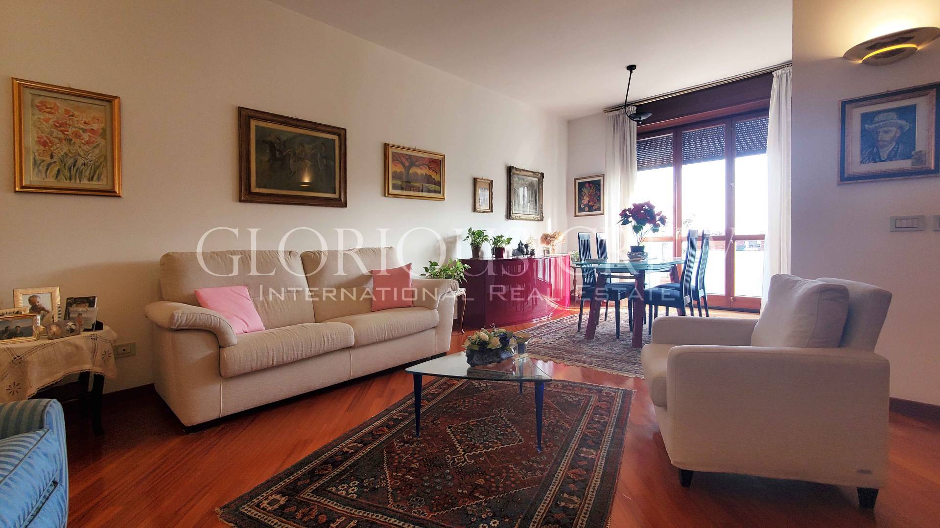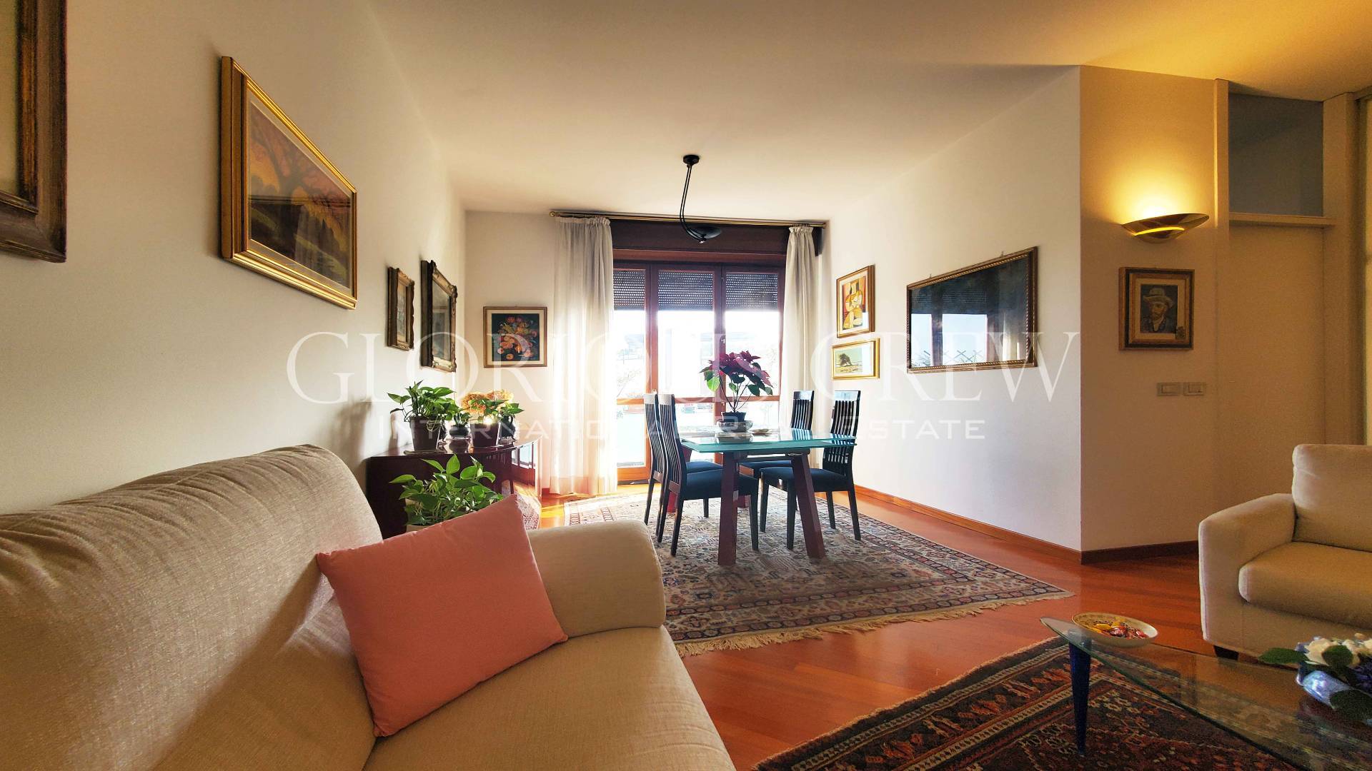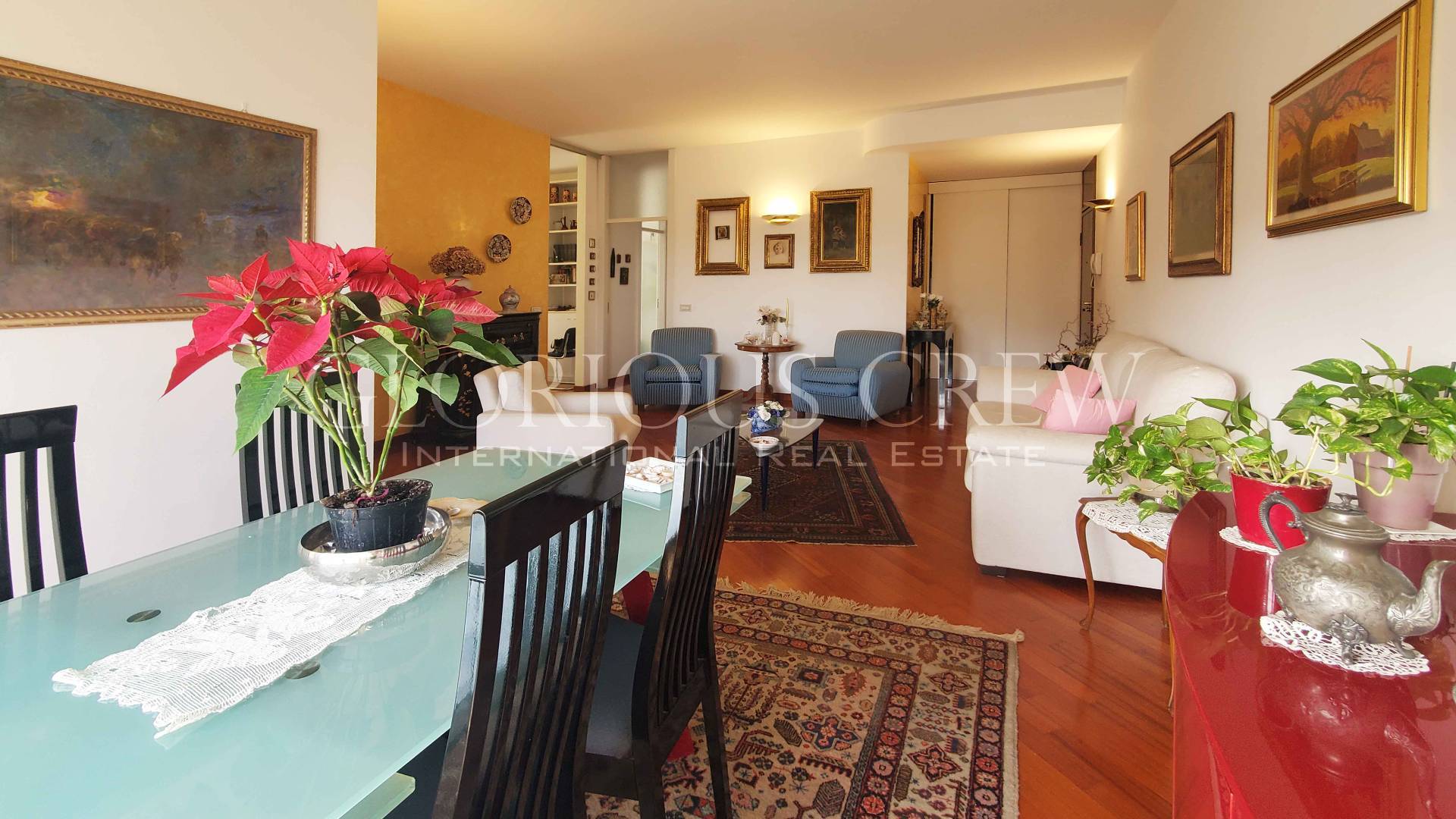 L’appartamento, mantenuto in condizioni impeccabili, si apre su un ingresso che introduce alla spaziosa zona living, composta da sala e soggiorno, estremamente luminosa grazie alle ampie porte-finestre con affaccio diretto sui balconi.
